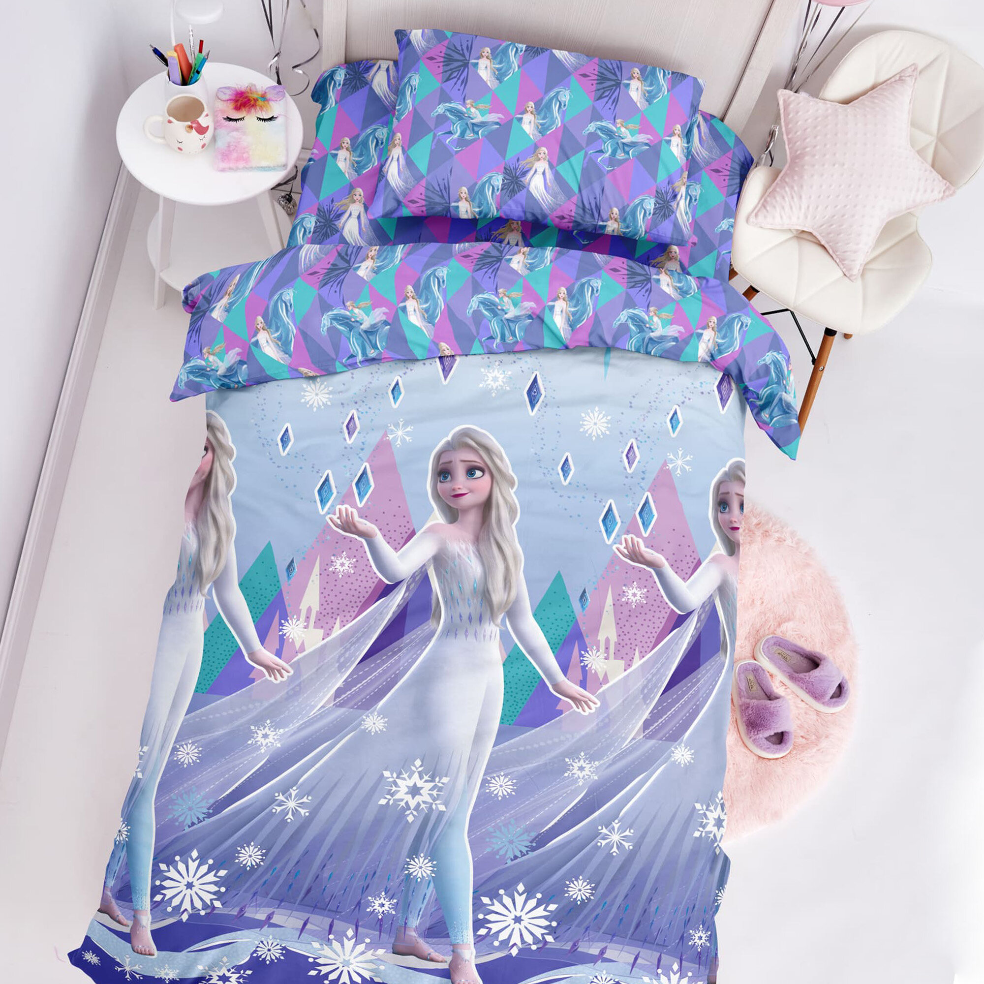 Детское Постельное белье 1.5 спальное Непоседа, Поплин, нав. 70х70, Магия Эльзы (Холодное сердце)