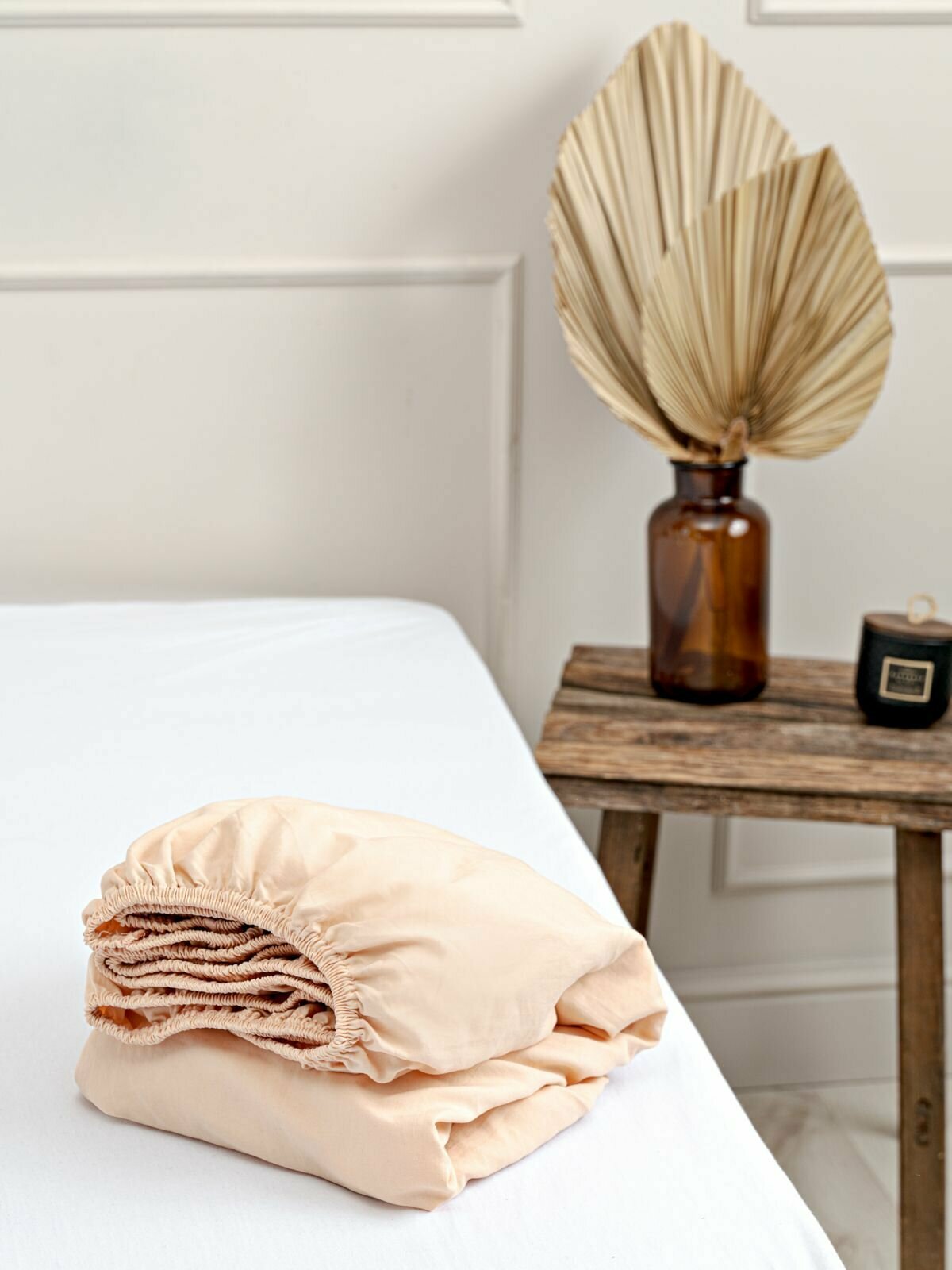 Простыня на резинке ОТК, 180x200x20см, пудра