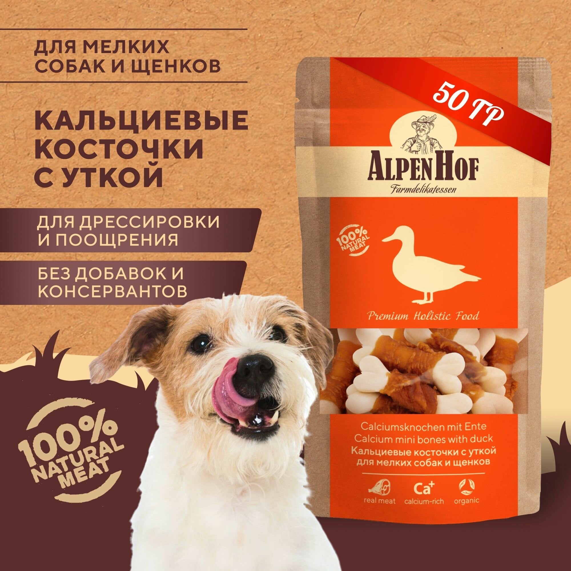 Купить AlpenHof лакомство для собак Кальциевые косточки с уткой для мелких собак и щенков АльпенХоф, 50 г.