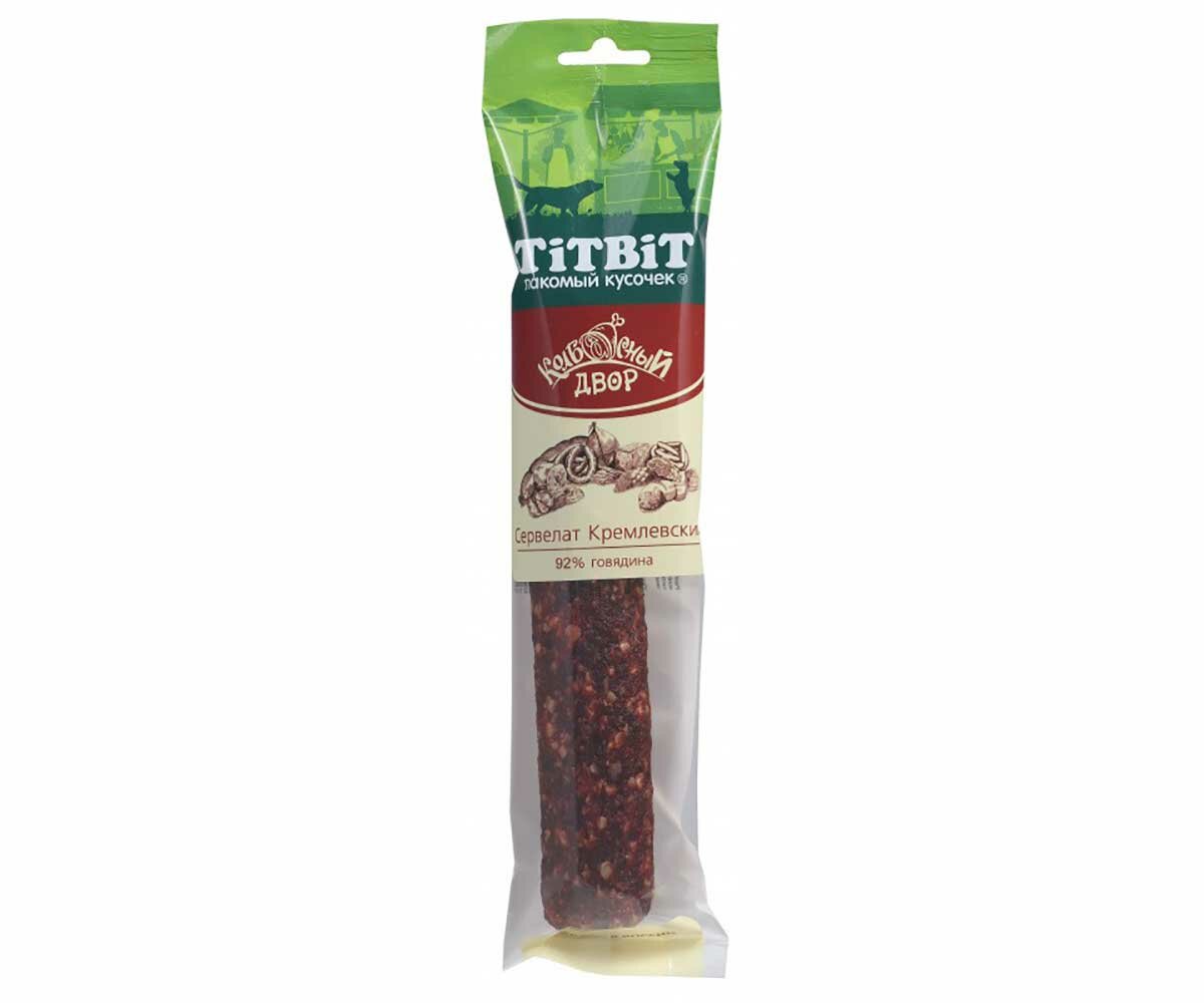 Лакомство TiTBiT колбасный двор сервелат кремлевский для собак (200 г) интересное: