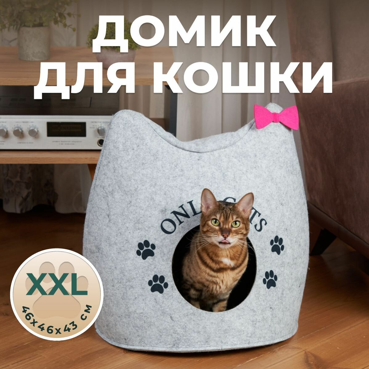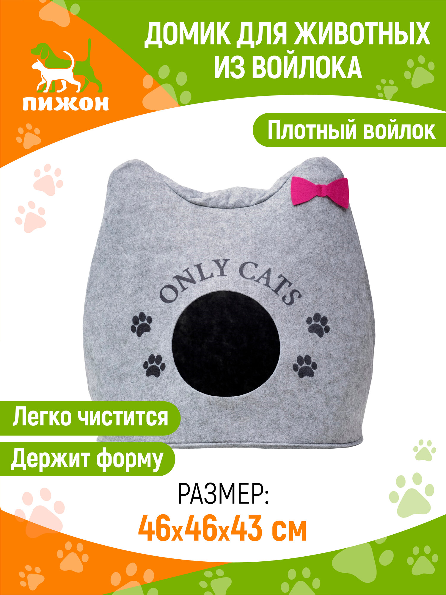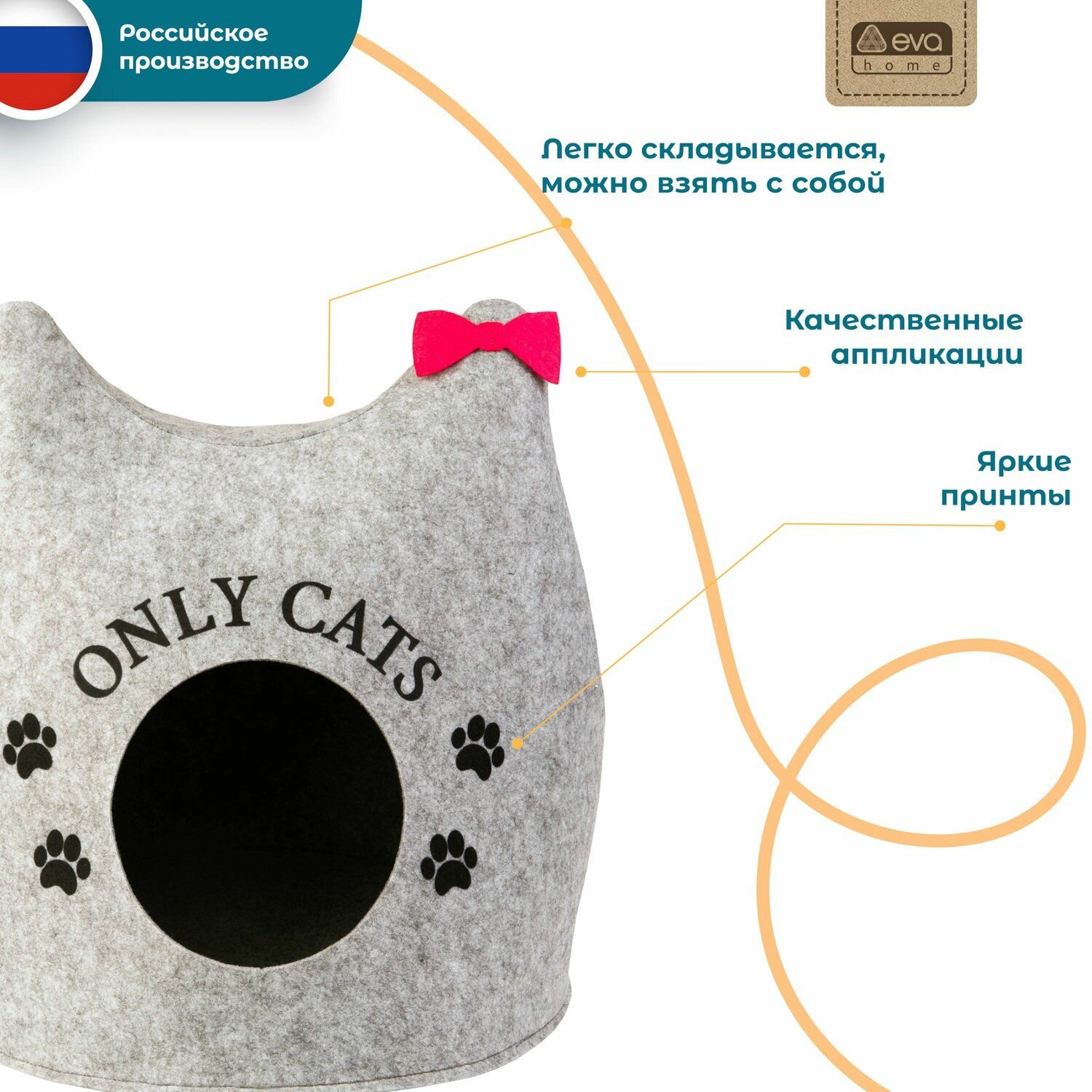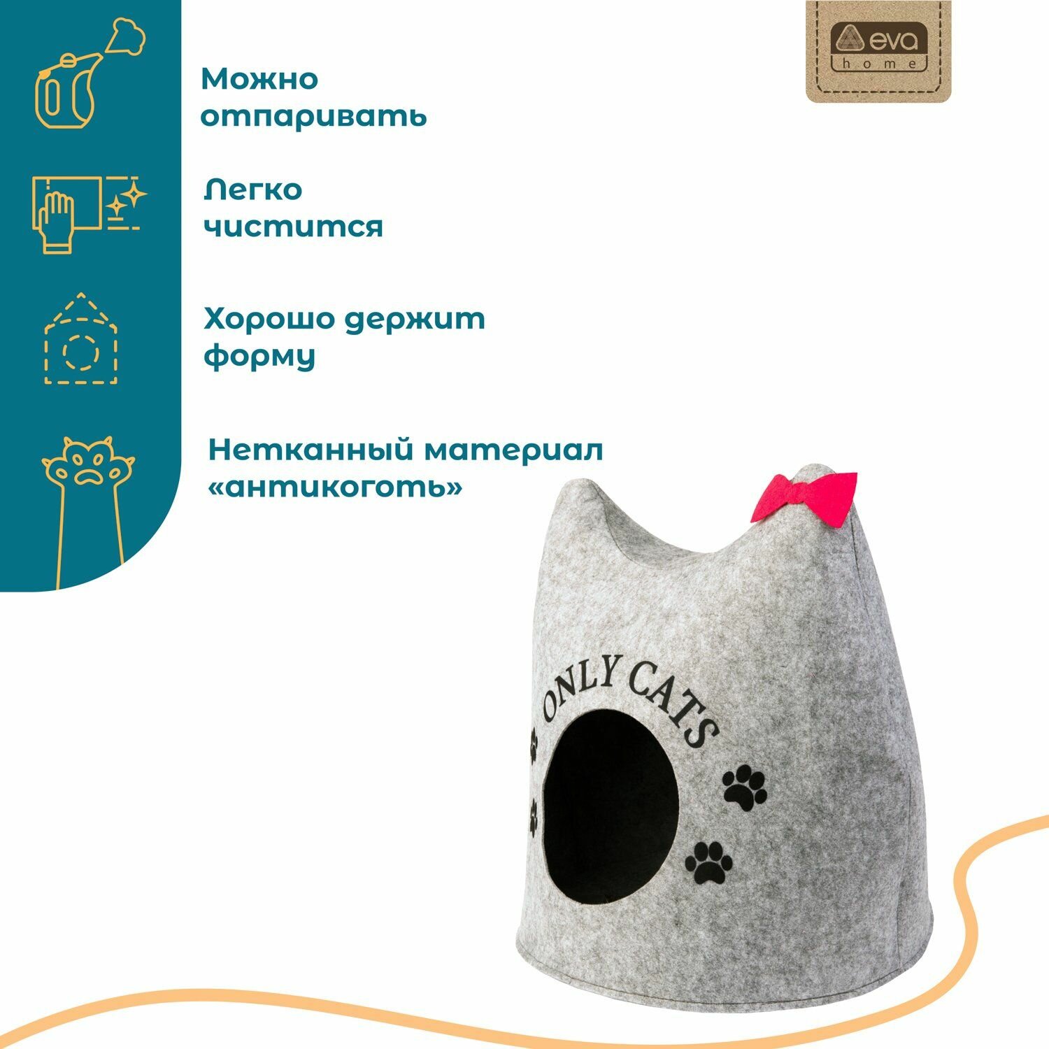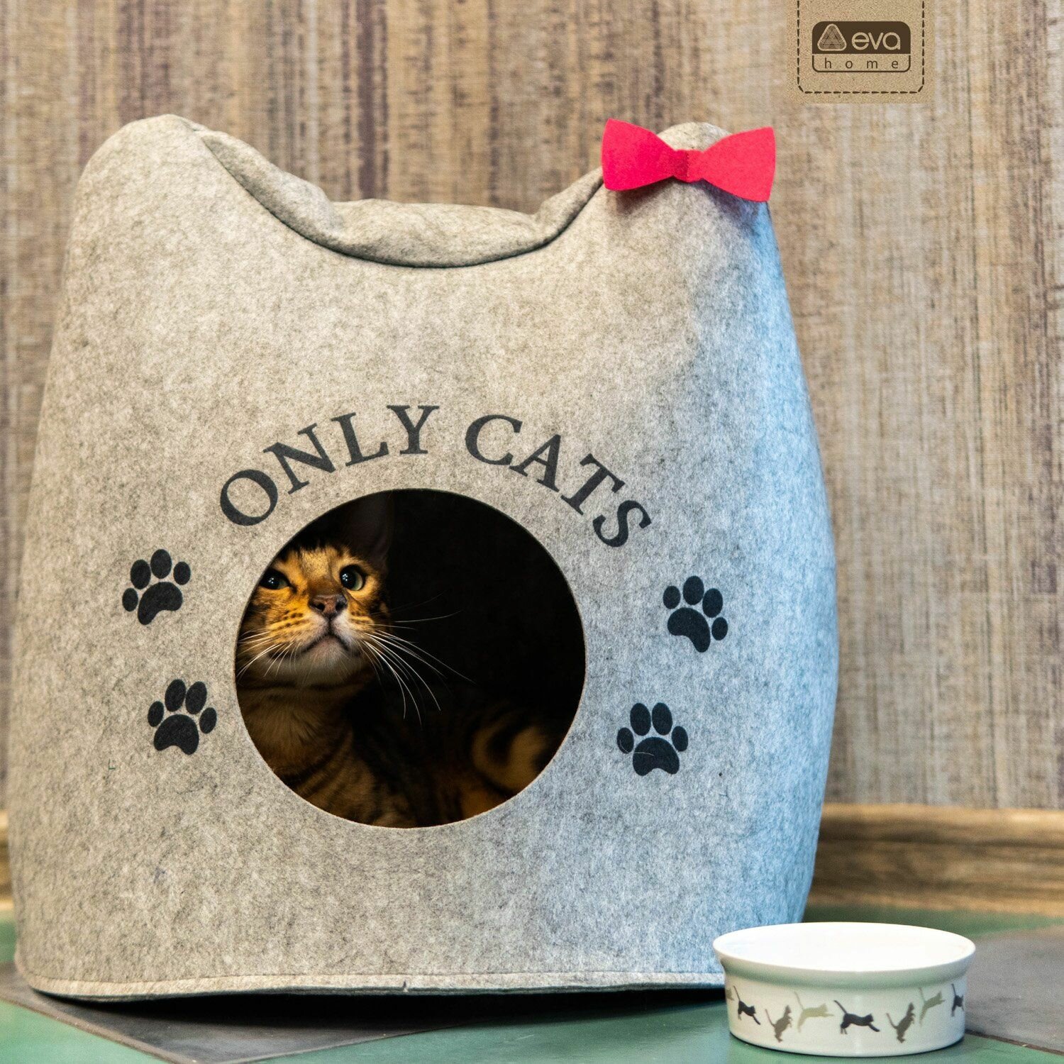 Домик для кошек и собак мелких пород, Eva pets, "Ушастик ONLY CATS", мягкий/серый/складной, из войлока