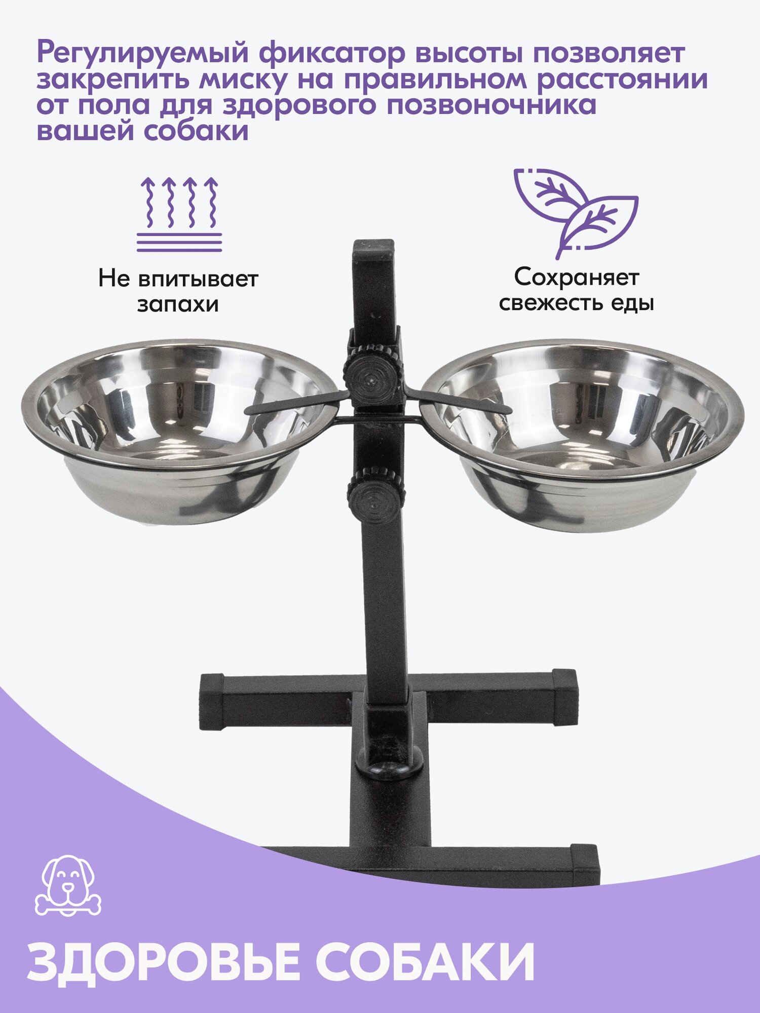 Купить Миска на подставке, стойка металлическая, регулируемая, двойная "PetTails", черная, h40см, 2*1,0л, D20см
