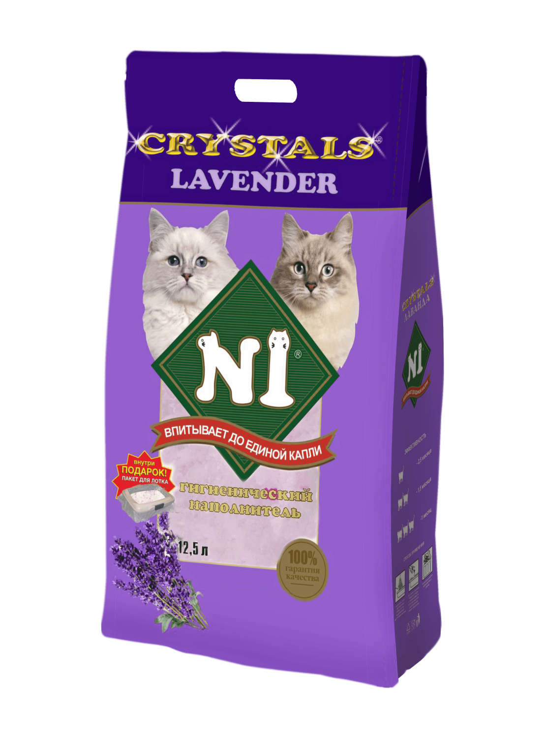 Наполнитель N1 Crystals для кошачьего туалета LAVENDER Силикагель 12,5л (Пакет для лотка В подарок, внутри упаковки)