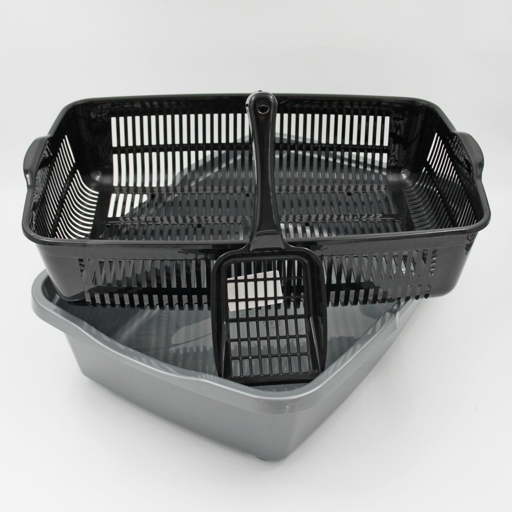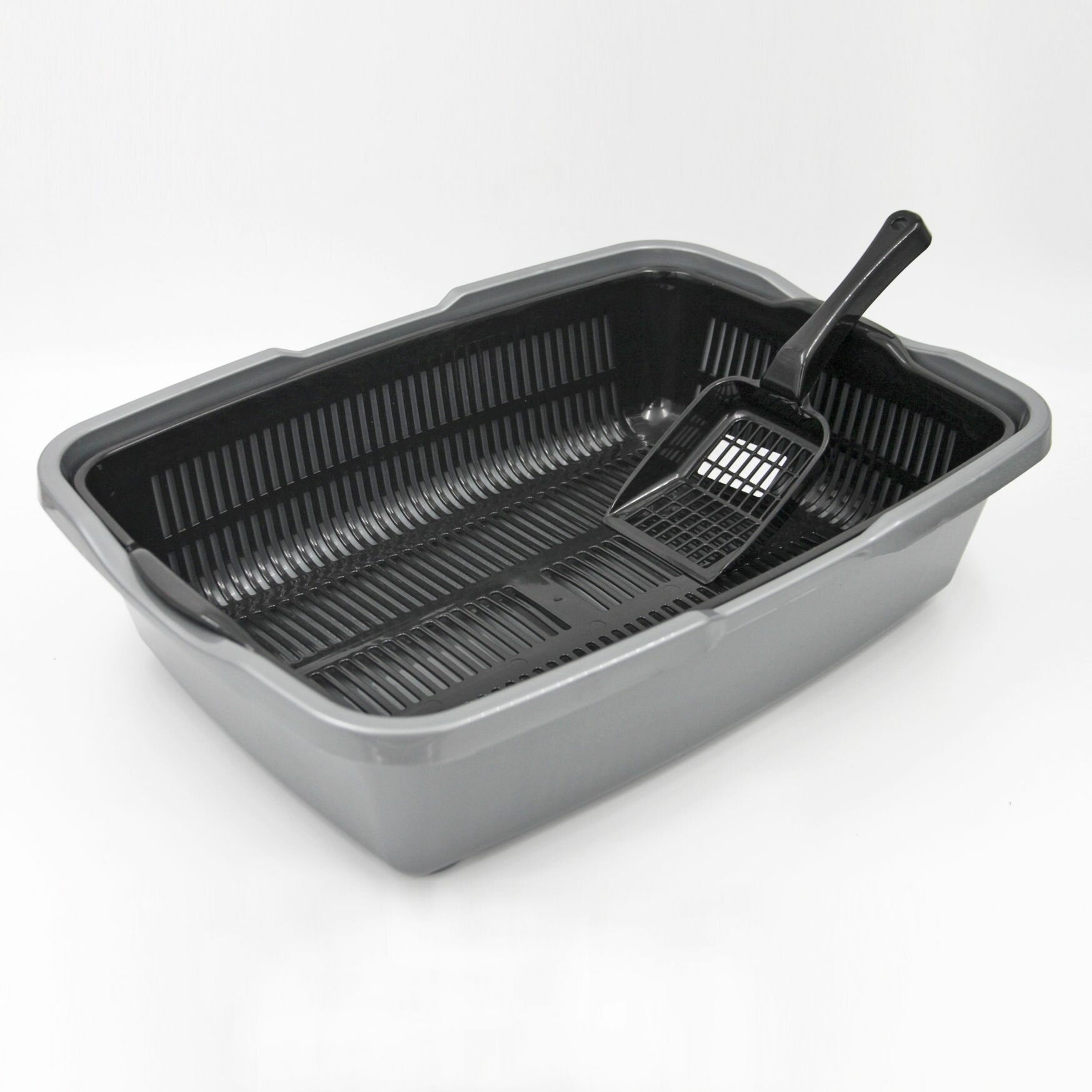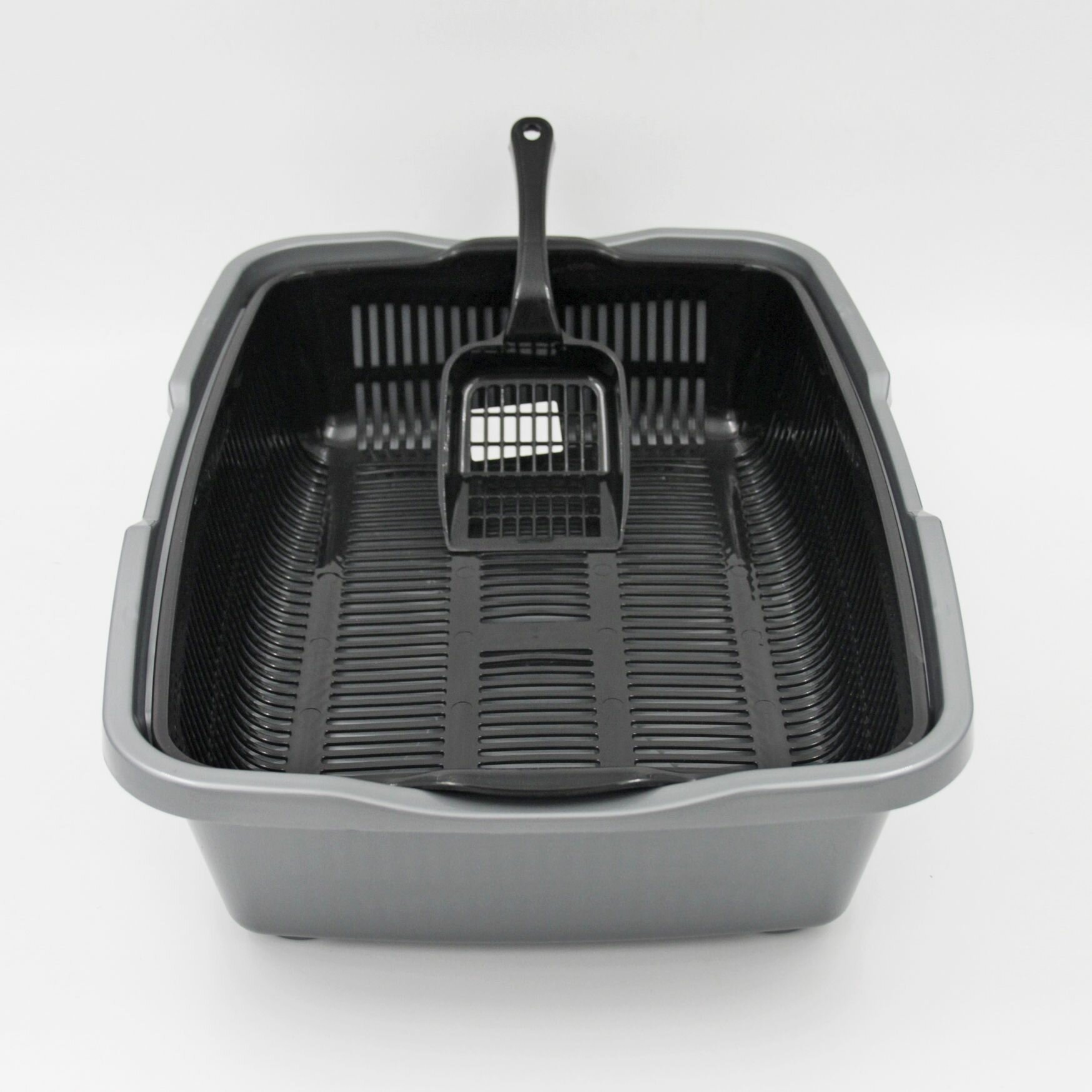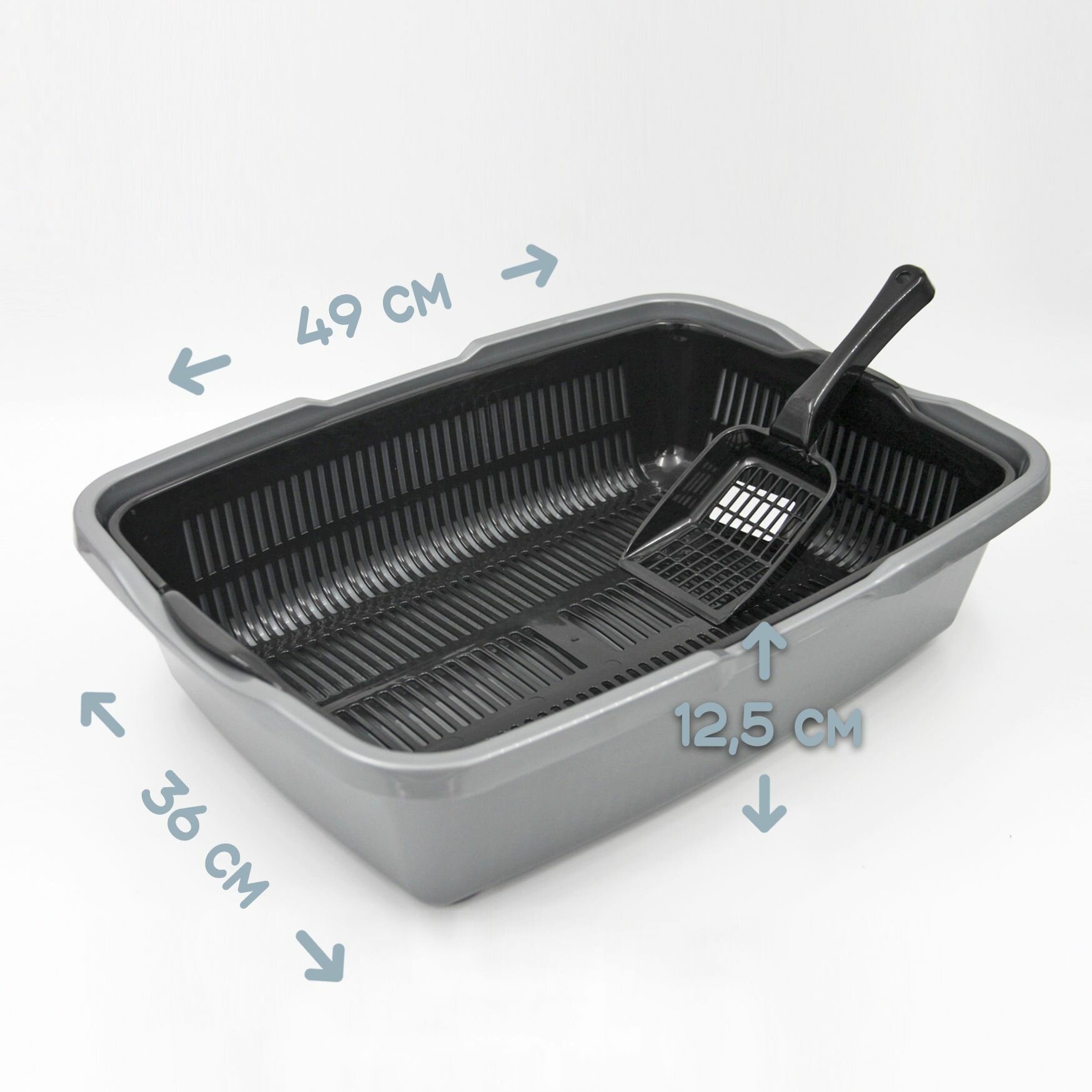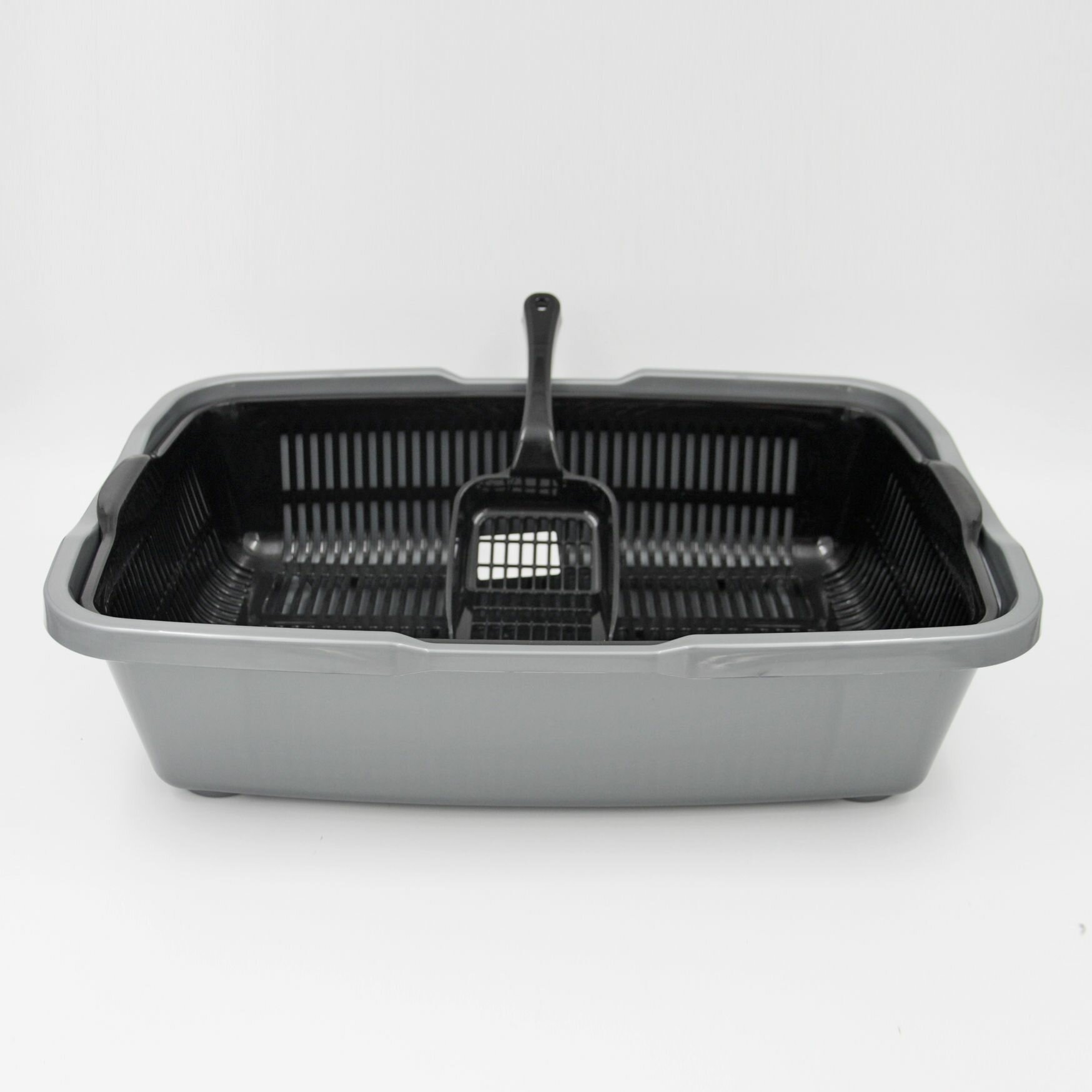 Кошачий туалет для кота с совком и сеткой, большой, светло-серый