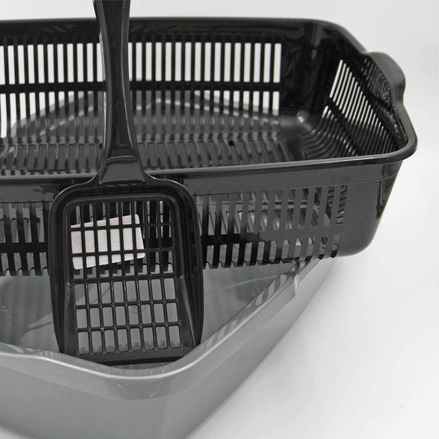 Туалет для кошек большой с сеткой светло-серый + совок в подарок