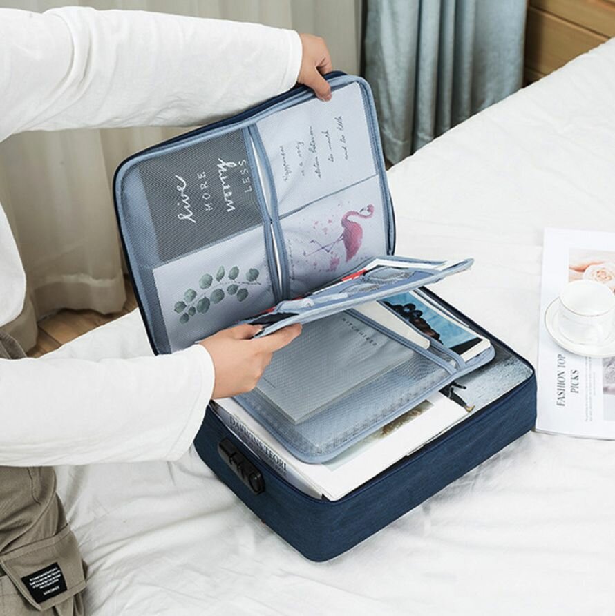 Купить Органайзер для хранения документов А4, канцелярии, с кодовым замком (Синий)
