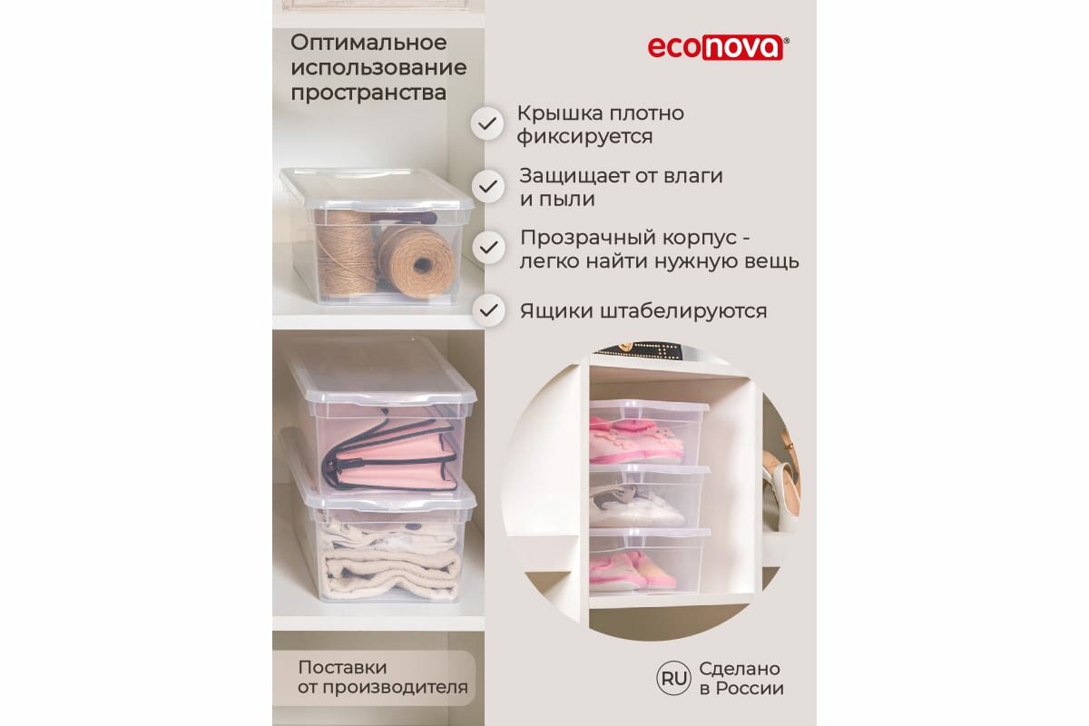 Контейнер для обуви с крышкой Econova "Кристалл", 33x19x12см, 5л, бесцветный