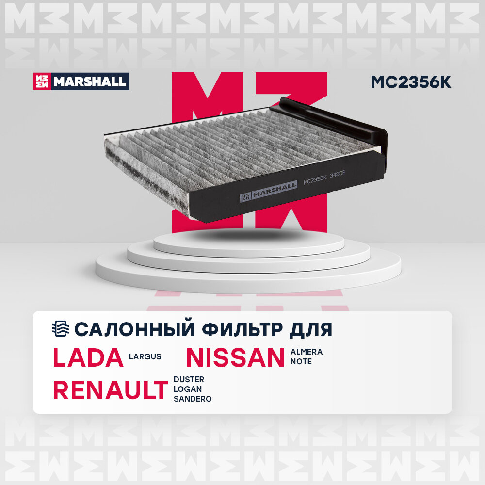 Фильтр салонный угольный MARSHALL MC2356K для Lada Largus, Nissan Almera / Note, Renault Duster / Logan / Sandero // кросс-номер MANN CUK 1829