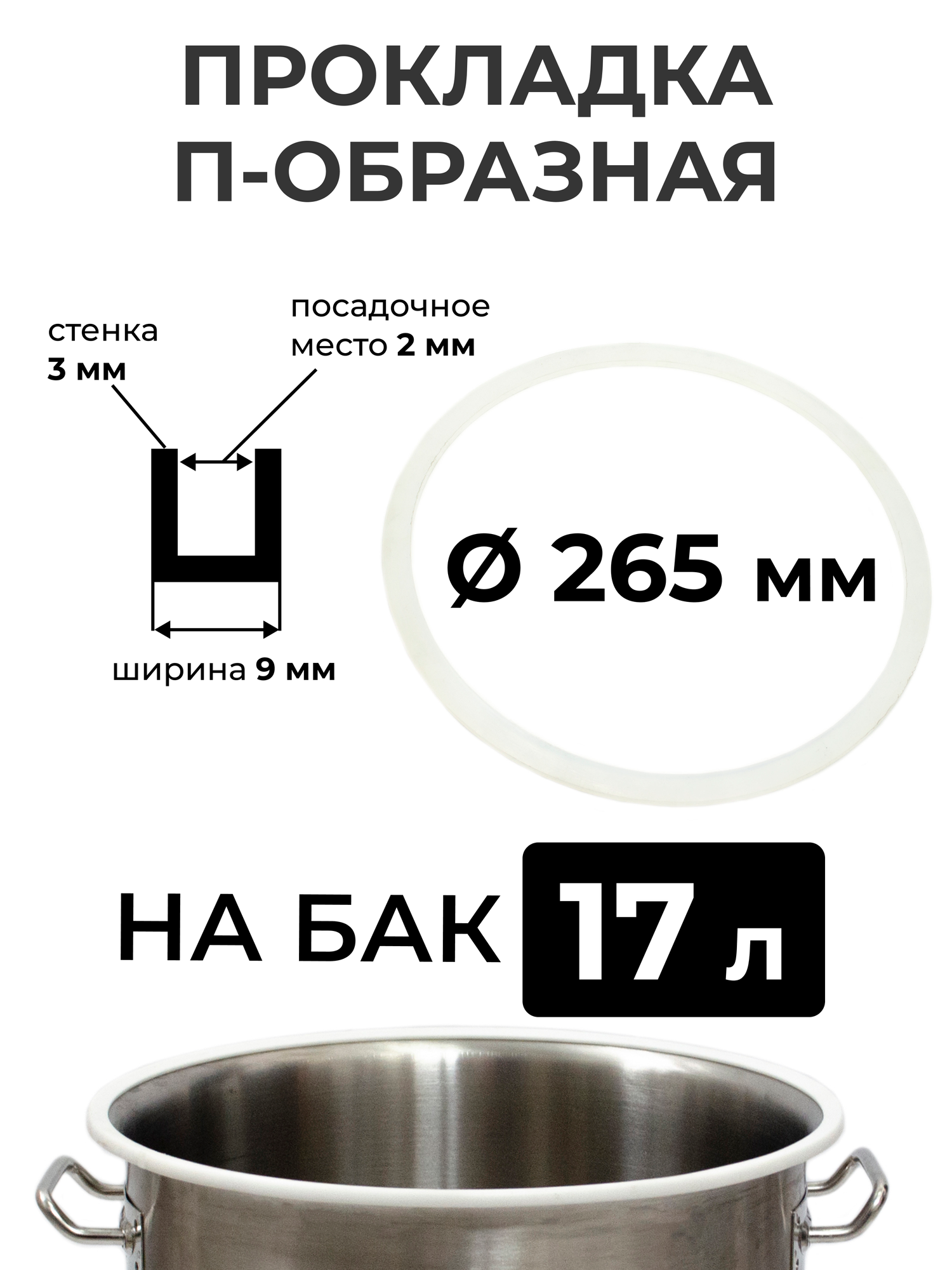 Прокладка силиконовая П-образная на перегонный куб 17 литров (26,5 см.), стенка 3 мм. интересное: