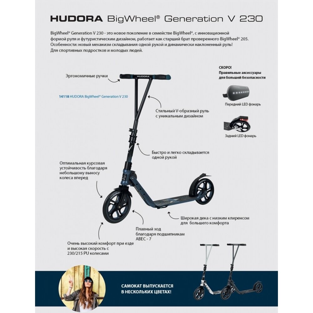 Городской самокат HUDORA Big Wheel Generation V 205, салатовый интересное: