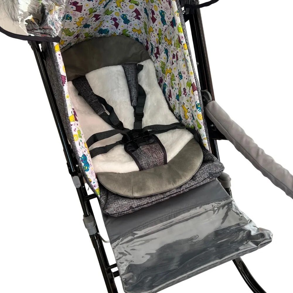 | Особенности | горизонтальное положение спинки / перекидная ручка / подножка / регулировка наклона спинки / ремни безопасности / складные |