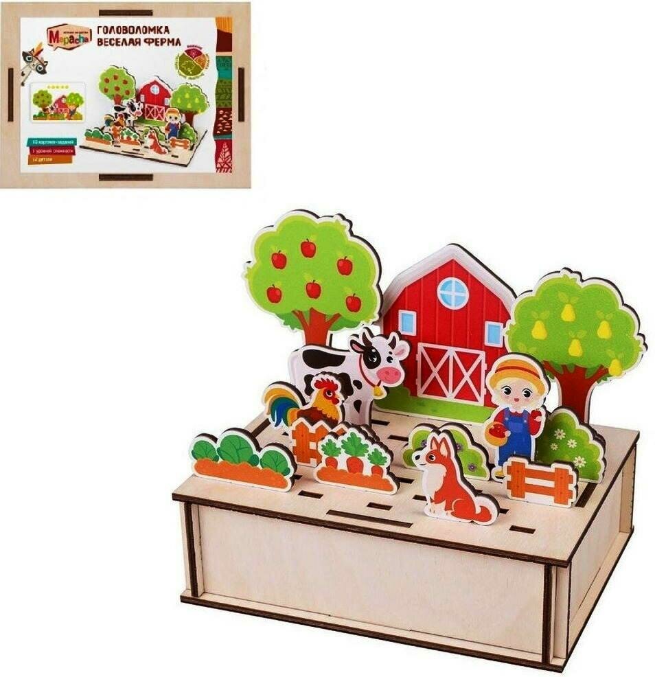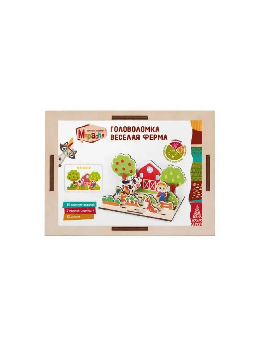 Головоломка Mapacha «Весёлая ферма», для развития моторики, 22 деревянные детали