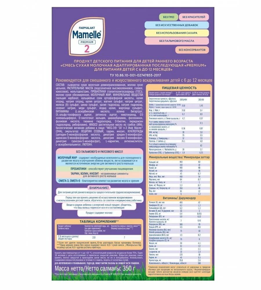 MAMELLE Premium 2 - сухая молочная смесь для детей от 6 до 12 мес, 350 гр интересное: