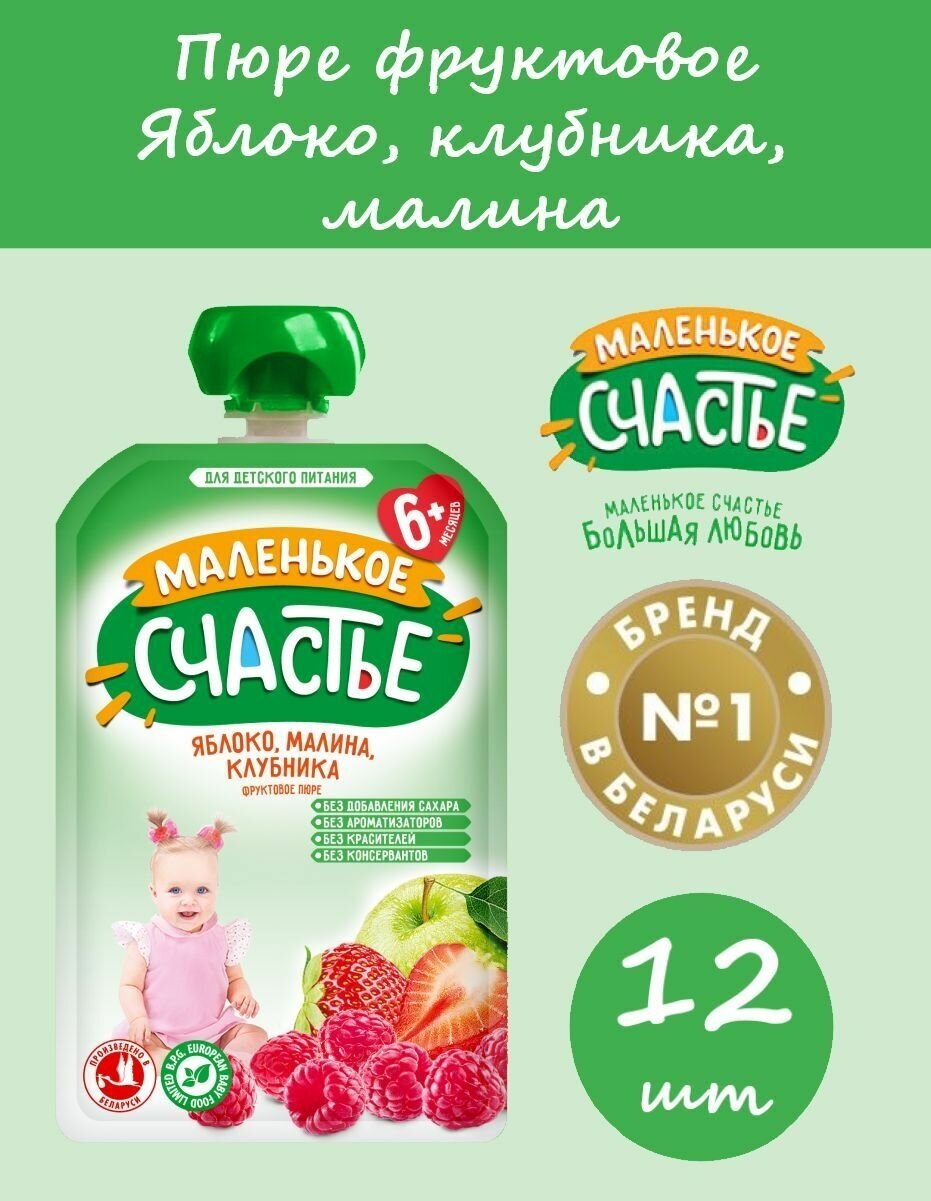 Пюре детское Маленькое счастье фруктовое Яблоко-Малина-Клубника 90 г x 12 шт с 6 месяцев интересное: