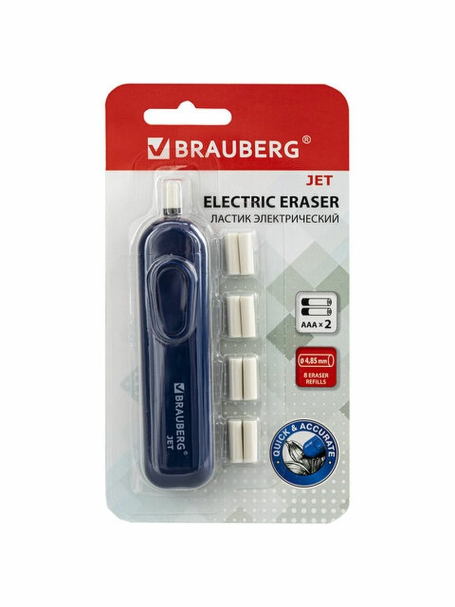 Ластик электрический BRAUBERG JET, питание от 2 батареек ААА, 8 сменных ластиков, синий, 229616