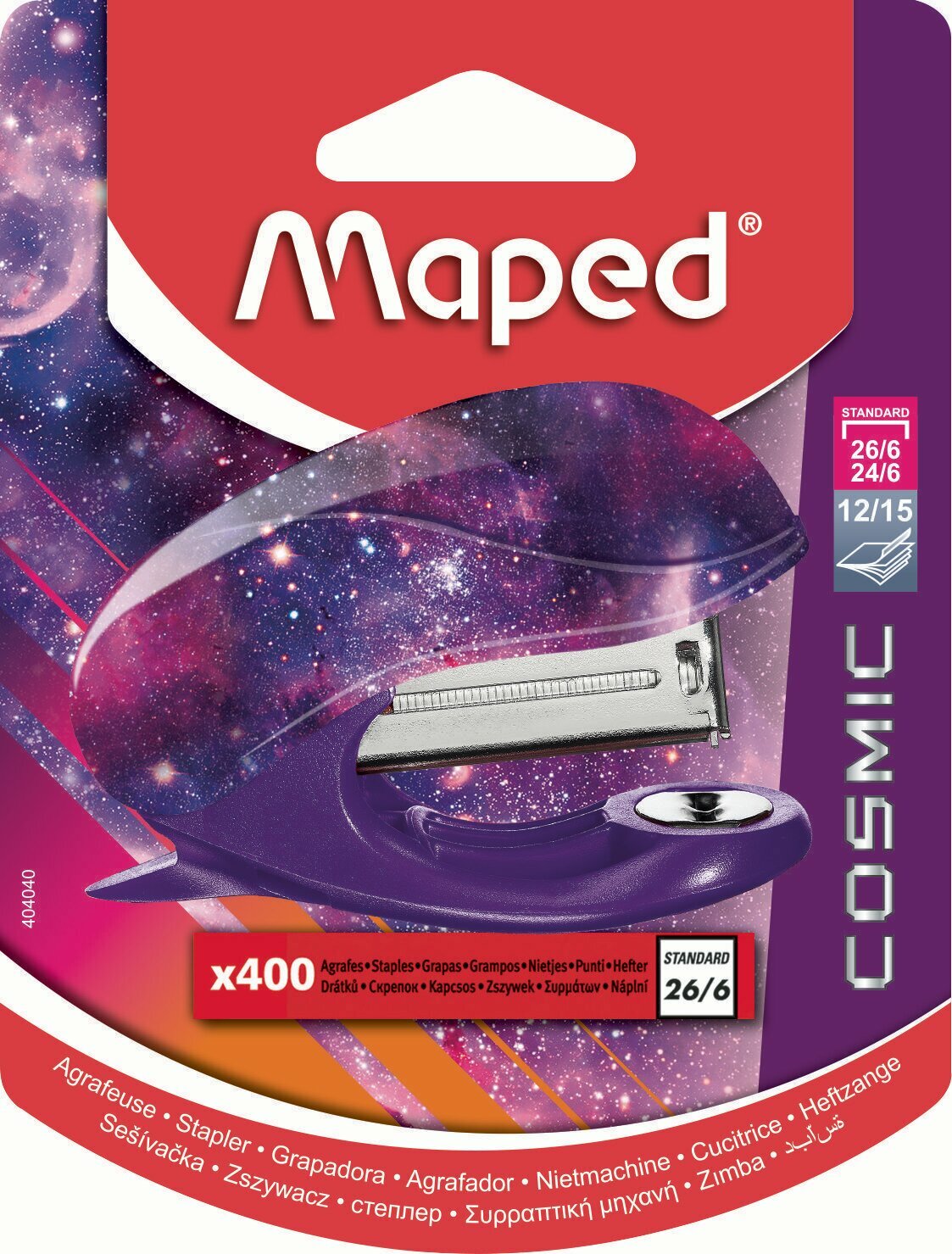 Степлер Maped Cosmic teens mini 26/6, 400 скоб в комплекте, c антистеплером, блистер, фиолетовый