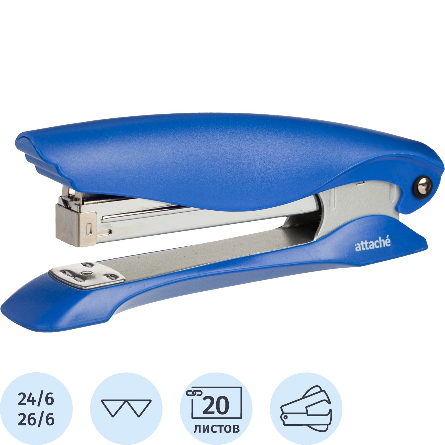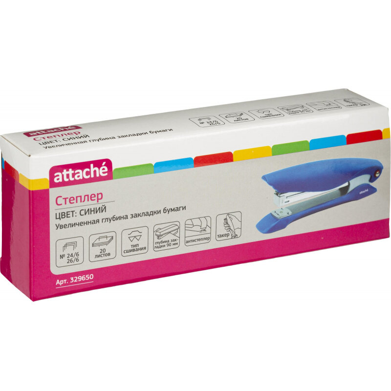 Купить Степлер Attache №24/6 до 20л. увелич. глубина закладки синий антистеп