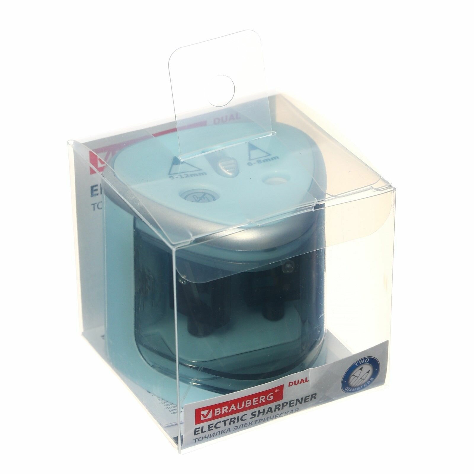 Точилка электрическая (электроточилка) для карандашей с контейнером для стружки Brauberg Dual (для 2 диаметров карандашей!), голубая
