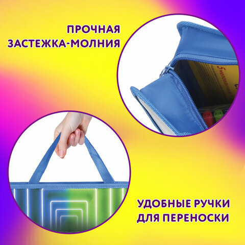Папка на молнии с ручками юнландия А4, 1 отделение, пластик, ширина 45 мм, "Neon race", 270950
