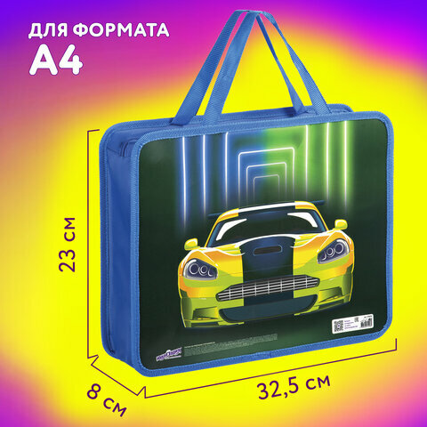 СохранитьПапка на молнии с ручками юнландия А4, 1 отделение, пластик, ширина 80 мм, "Neon car", 270118 интересное: