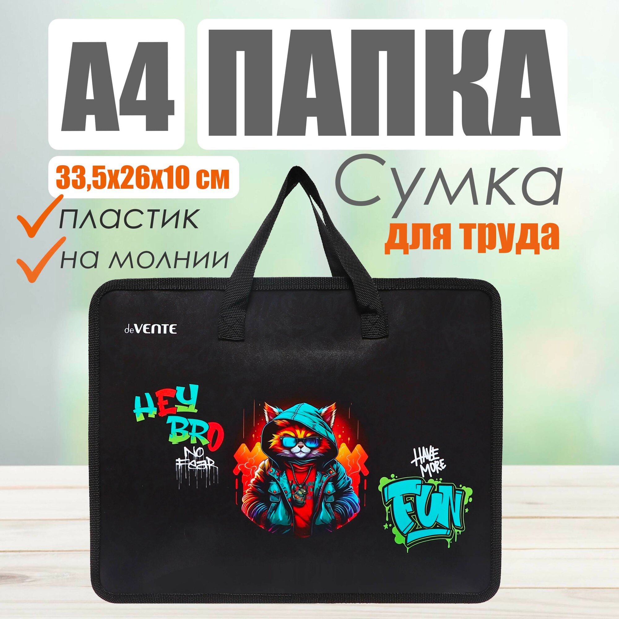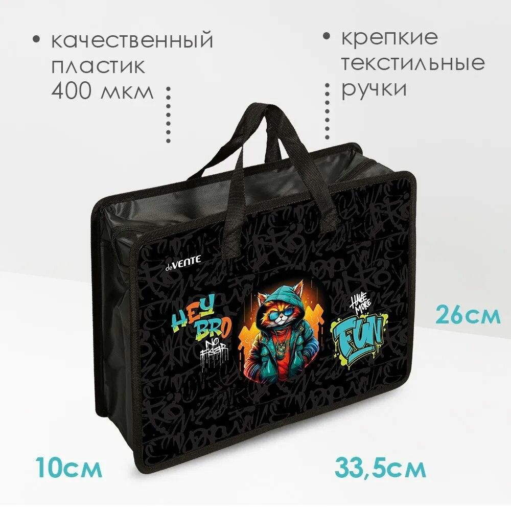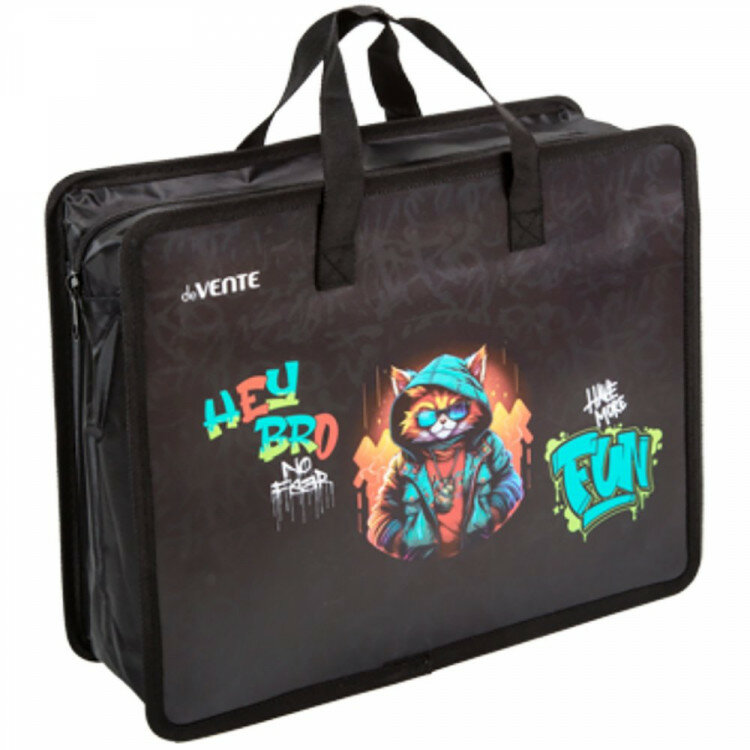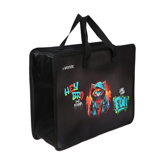 Купить Папка с ручками А4, 335 х 260 х 100 мм, пластиковая, ручки-текстиль, deVENTE Hey Bro, чёрная