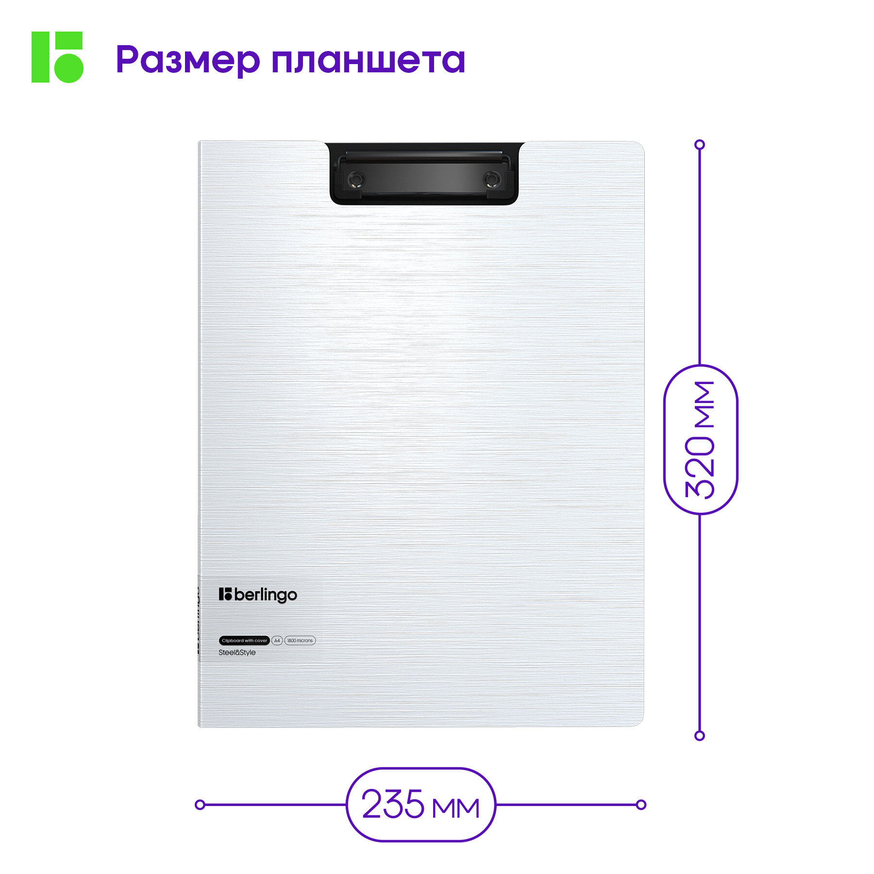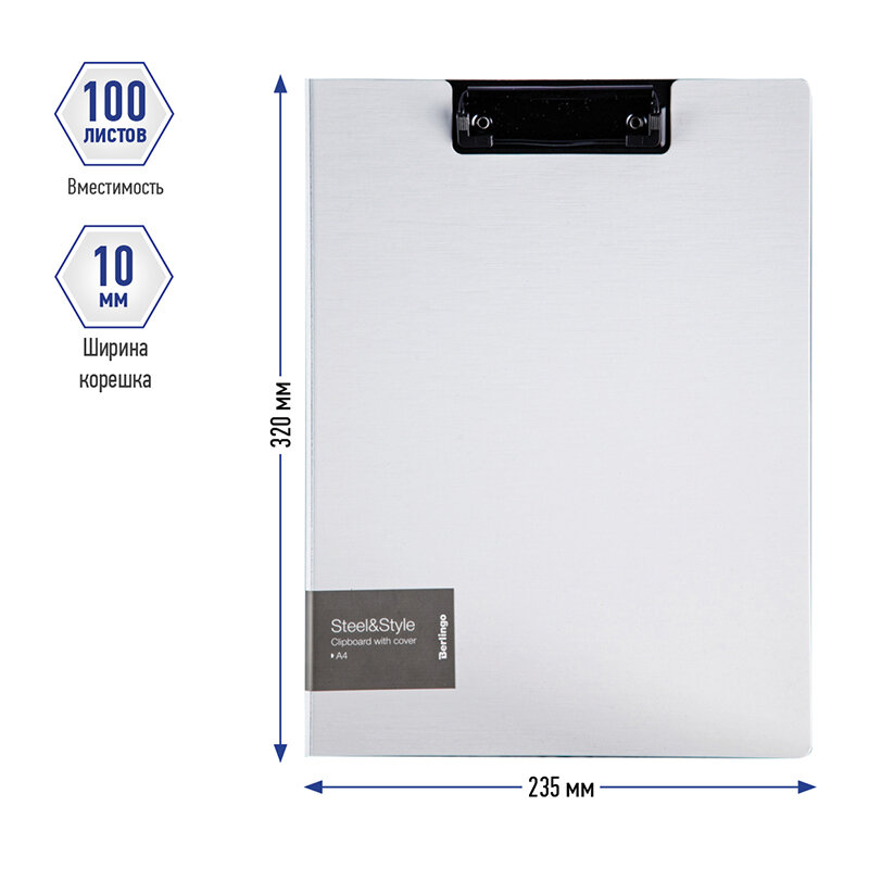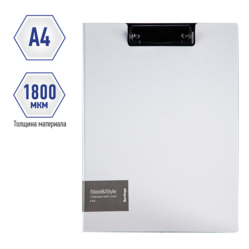 Папка-планшет с зажимом Berlingo Steel&Style A4, пластик, полифом, серебристый металлик