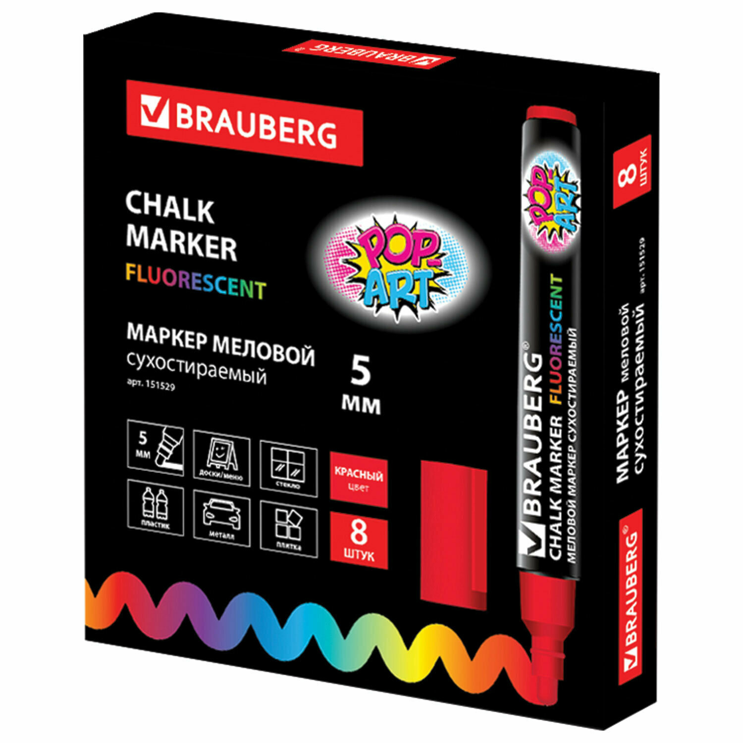 СохранитьМаркер меловой "POP-ART" красный, 5 мм, стираемый, для гладких поверхностей, BRAUBERG, 151529 интересное: