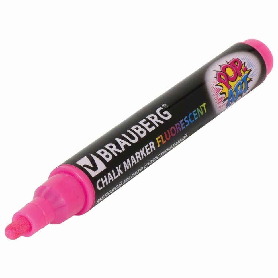 Маркер меловой BRAUBERG "POP-ART", сухостираемый, для гладких поверхностей, 5 мм, розовый, 151530