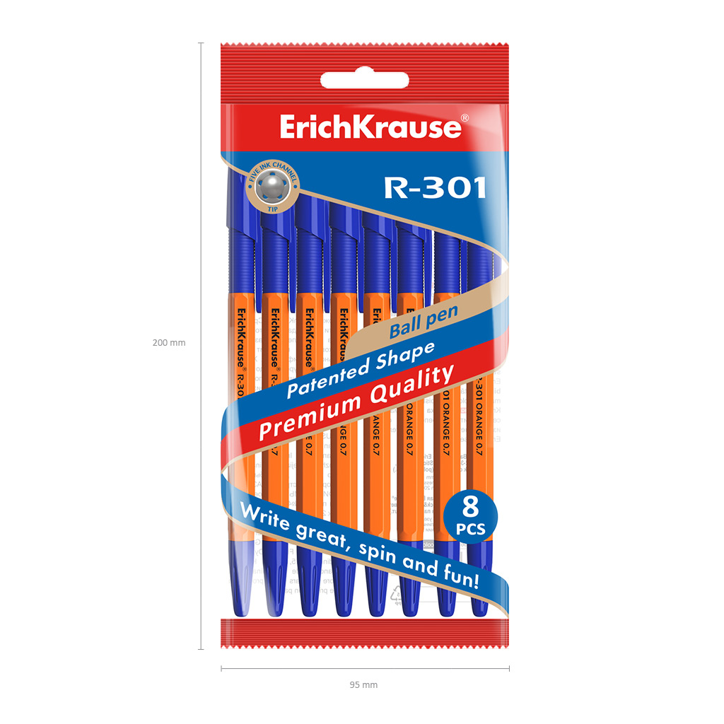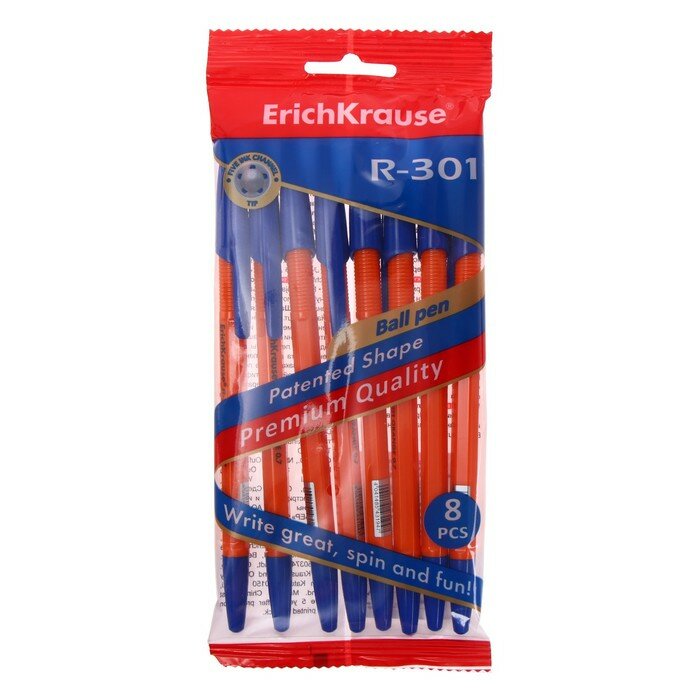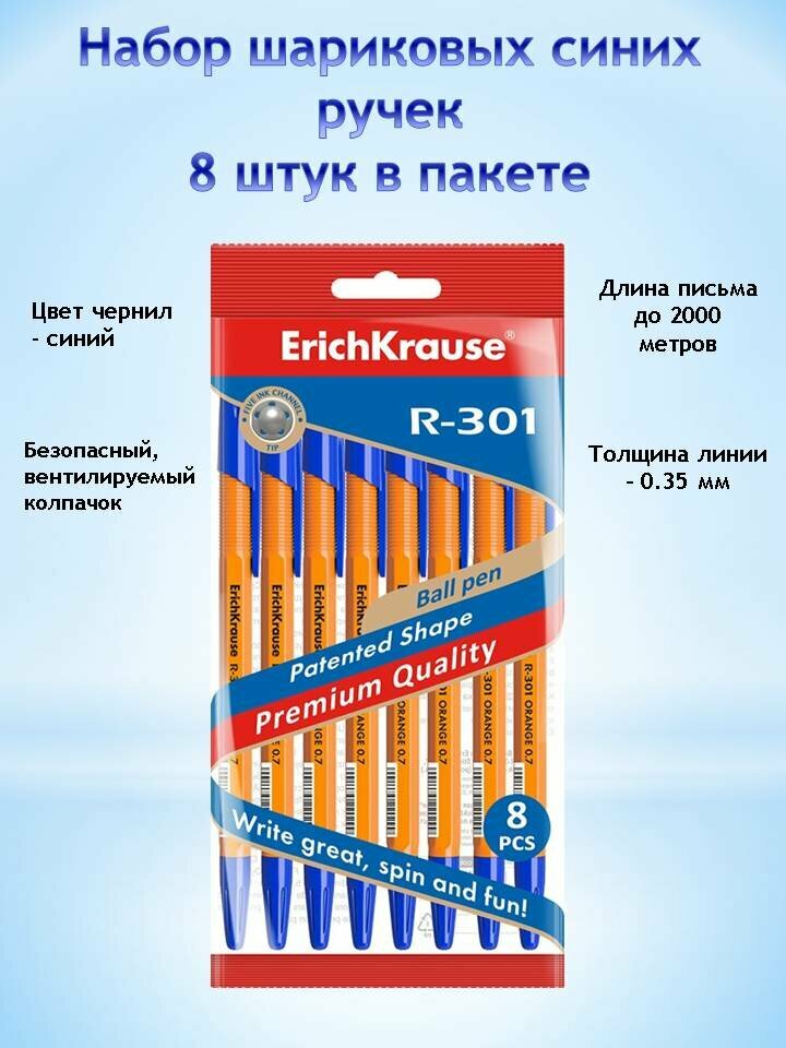 Набор из 8 ручек шариковых ErichKrause R-301 Stick Original 1.0, цвет чернил синий (в пакете)