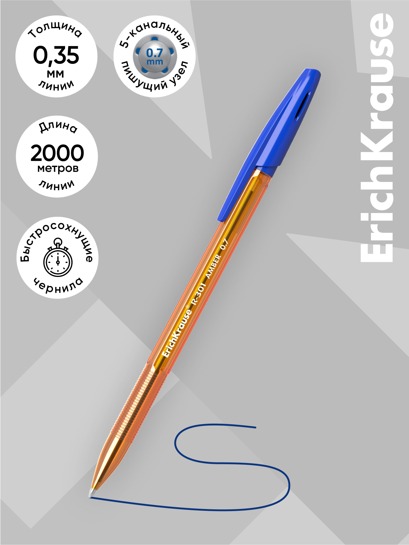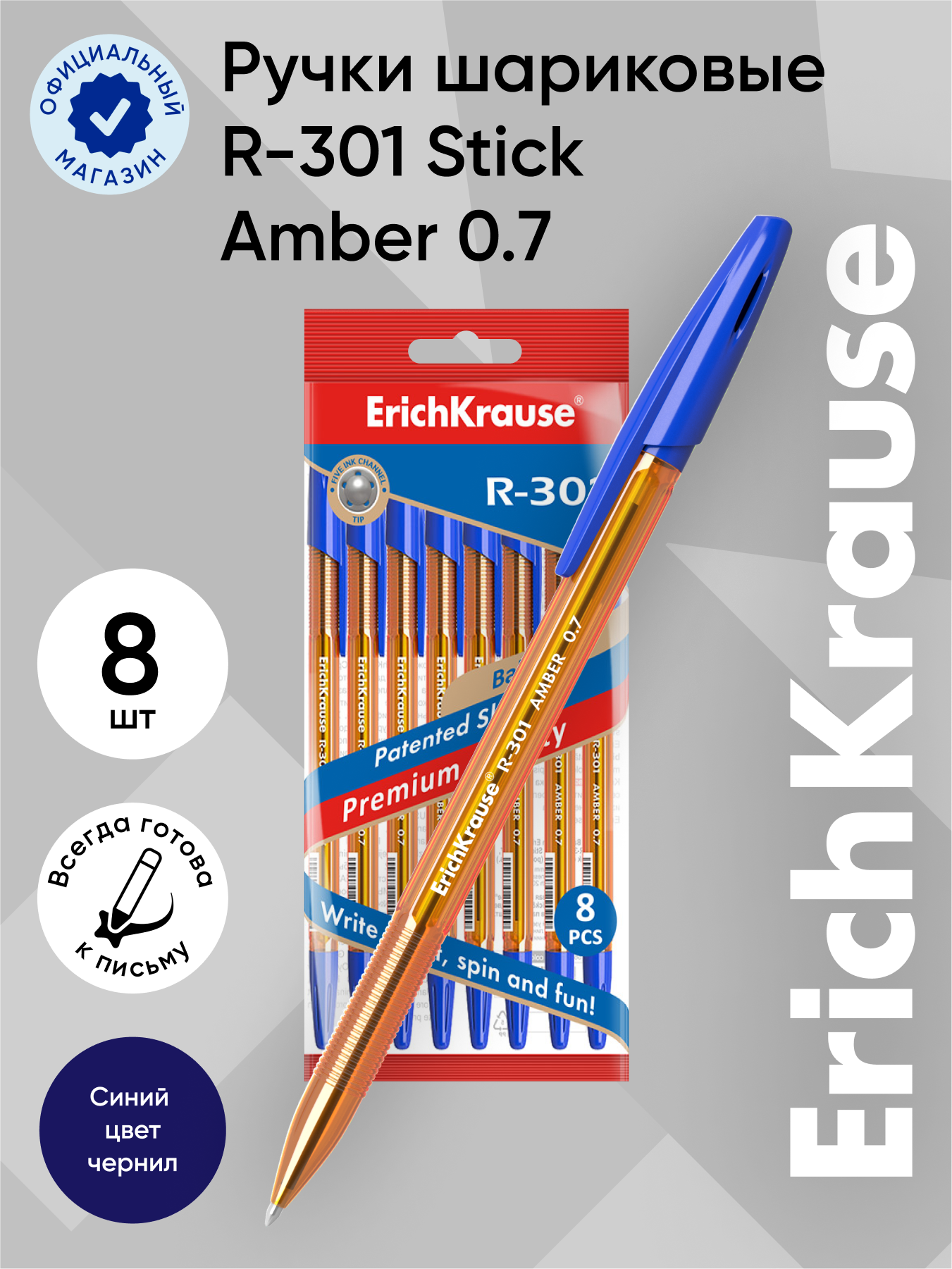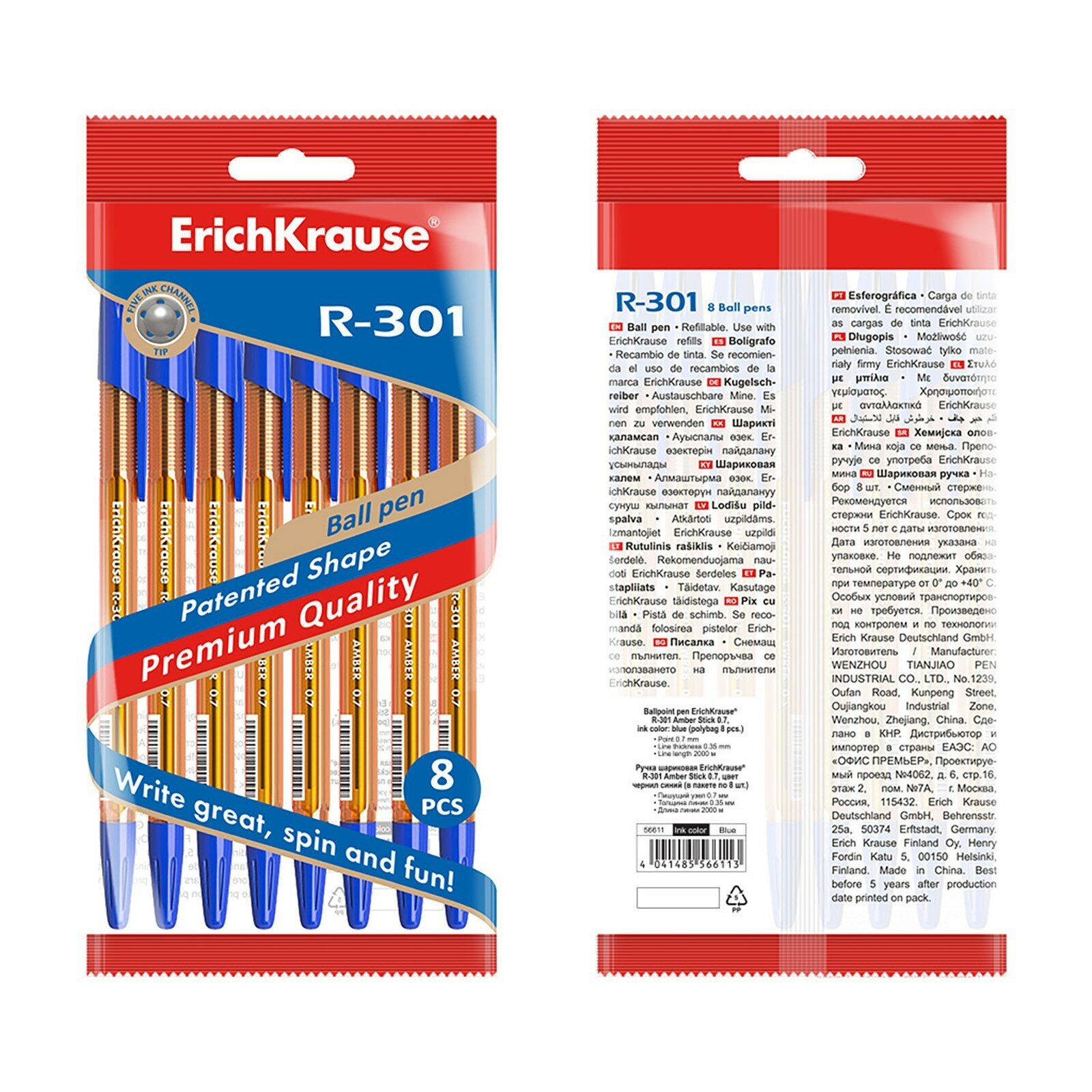 Купить Набор из 8 ручек шариковых ErichKrause R-301 Stick Amber 0.7, цвет чернил синий (в пакете)