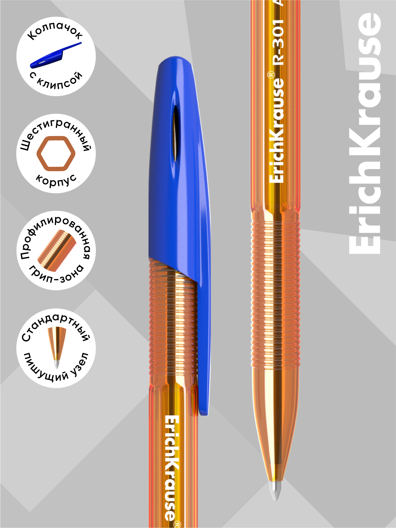 Ручка шариковая ErichKrause® R-301 Classic Stick 1.0, цвет чернил синий (в пакете по 8 шт.)