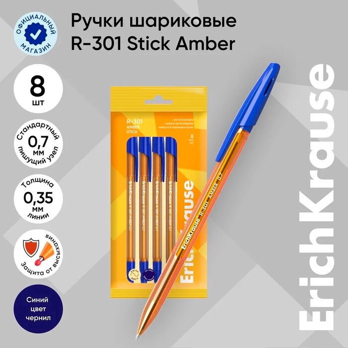 СохранитьНабор из 8 ручек шариковых ErichKrause R-301 Stick Amber 0.7, цвет чернил синий (в пакете) интересное: