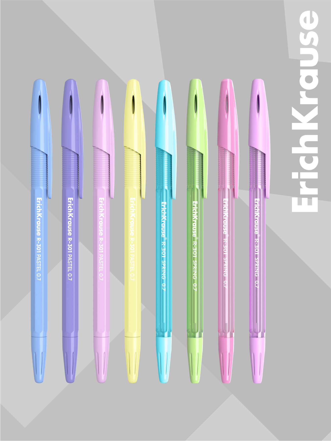 СохранитьНабор из 8 ручек шариковых ErichKrause R-301 Stick Spring/ Pastel 0.7, цвет чернил синий (в пакете) интересное: