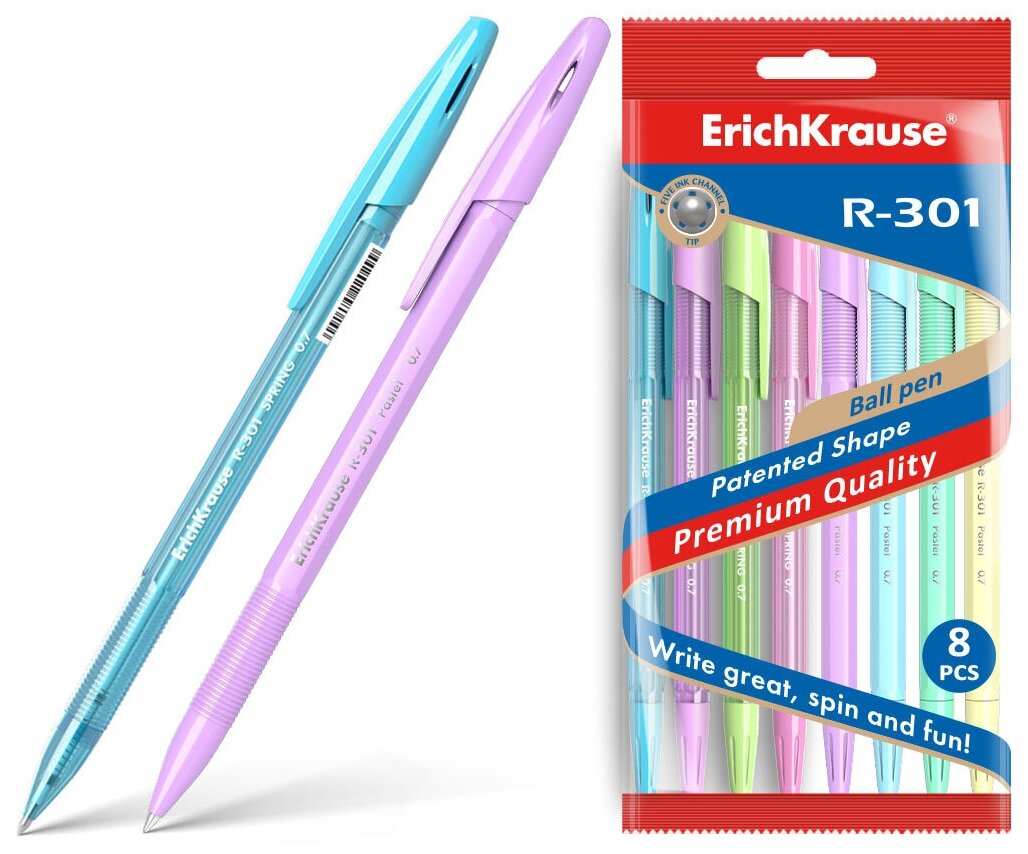 Купить Набор из 8 ручек шариковых ErichKrause R-301 Stick Spring/ Pastel 0.7, цвет чернил синий (в пакете)