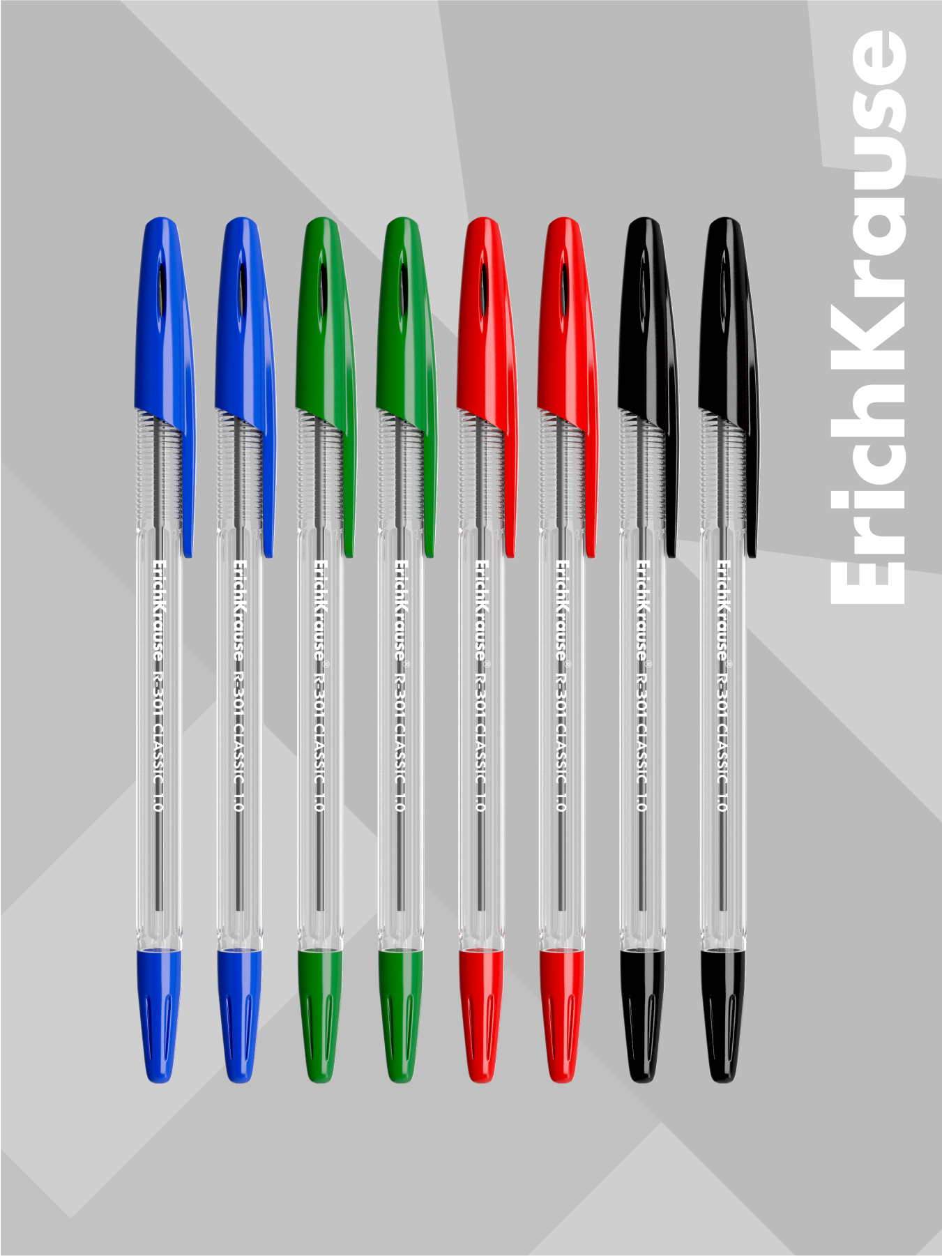 СохранитьНабор из 8 ручек шариковых ErichKrause R-301 Stick Classic 1.0, цвет чернил: синий, черный, красный, зеленый интересное: