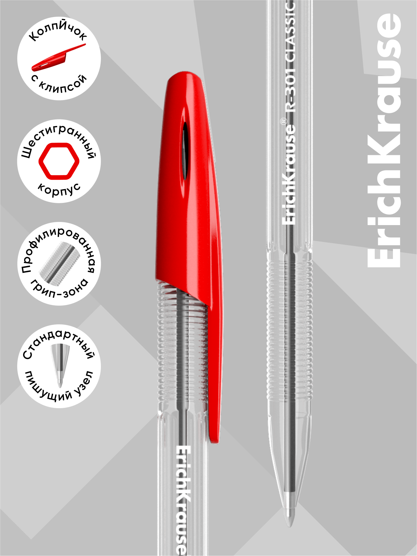 Ручка шариковая ErichKrause® R-301 Classic Stick 1.0, цвет чернил синий (в пакете по 8 шт.)