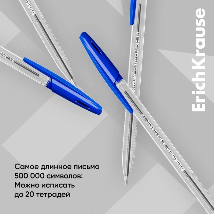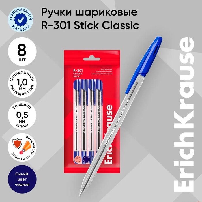 Ручка шариковая ErichKrause® R-301 Classic Stick 1.0, цвет чернил синий (в пакете по 8 шт.)