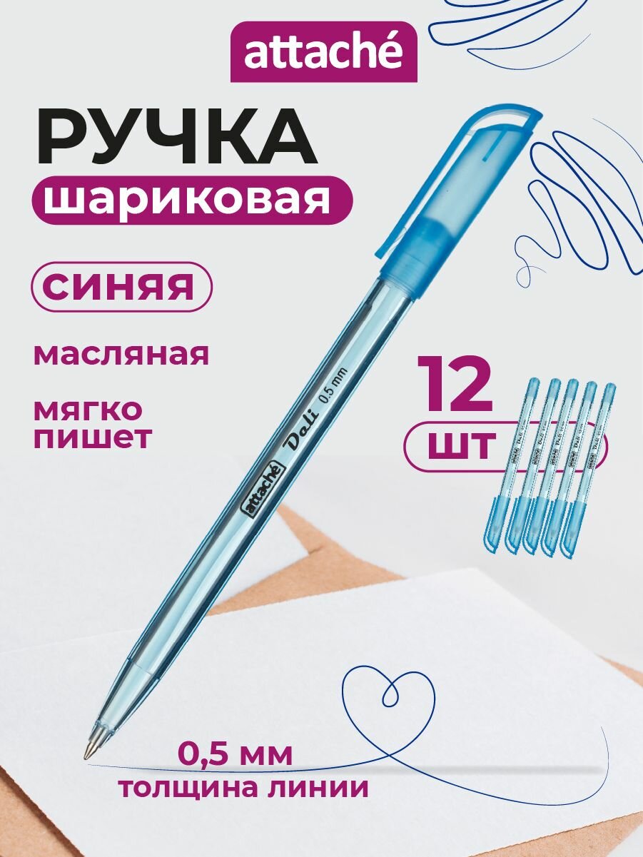 Ручки шариковые Attache, масляные, синие, линия 0,5 мм, набор 12 шт интересное:
