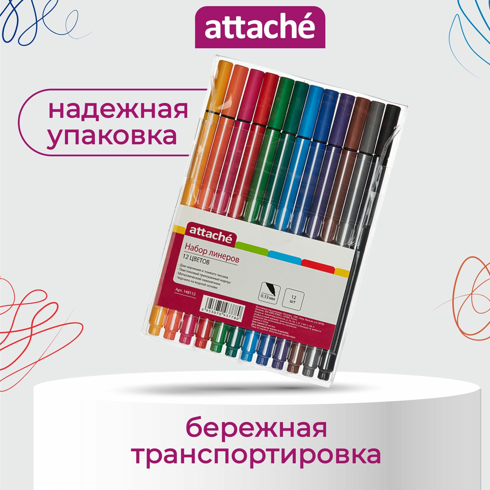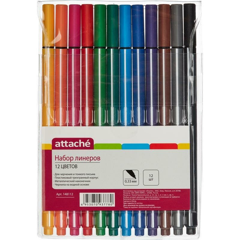 Купить Набор линеров Attache, для рисования и скетчинга, цветные, линия 0.33 мм, 12 шт