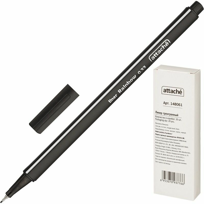 Линер Attache Rainbow, 0,33мм, трехгранный корпус, черный (3 штуки в упаковке)