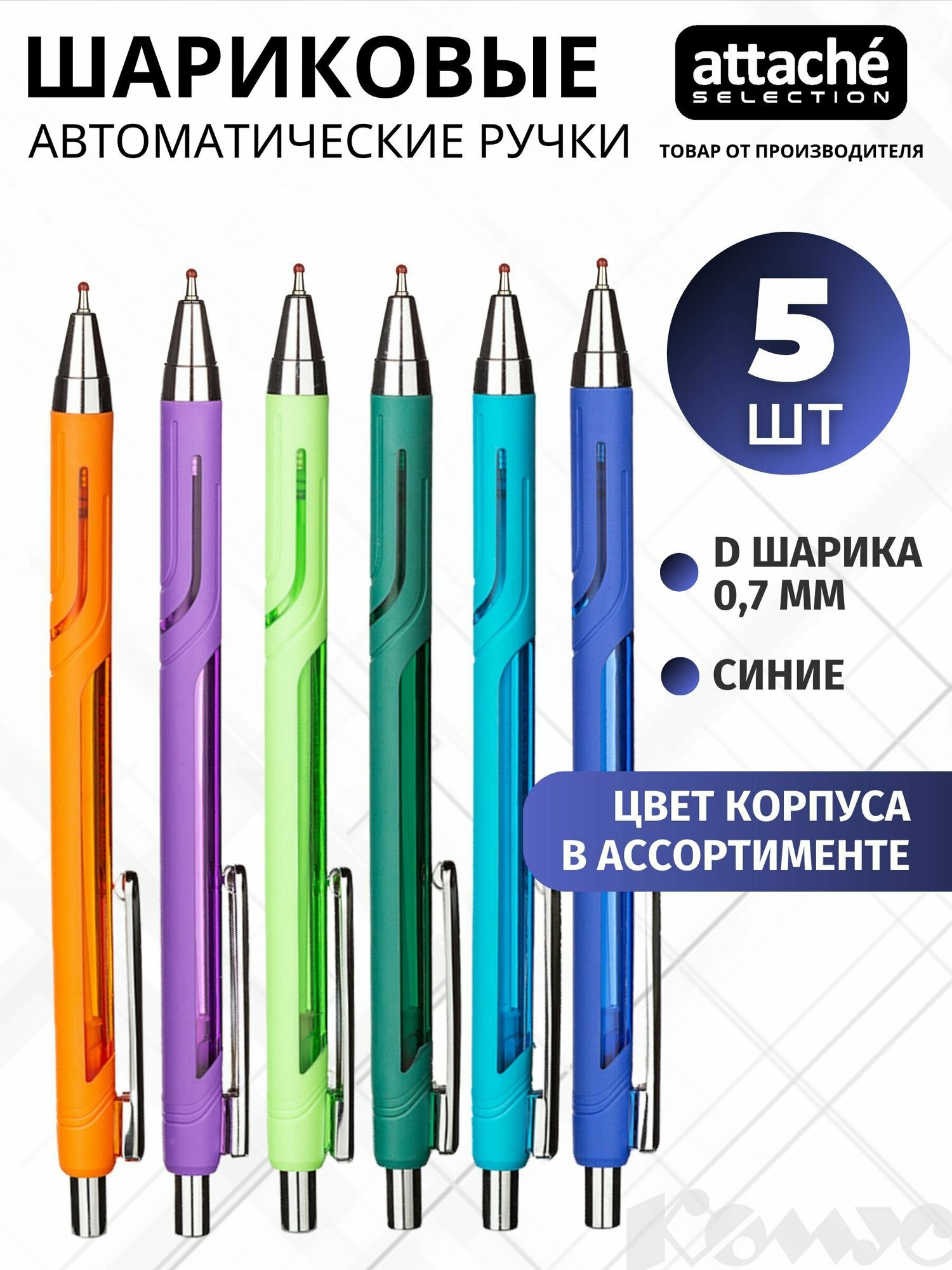 Купить Ручки шариковые Attache Selection, автоматические, масляные, синие, линия 0,5 мм, набор 5 шт