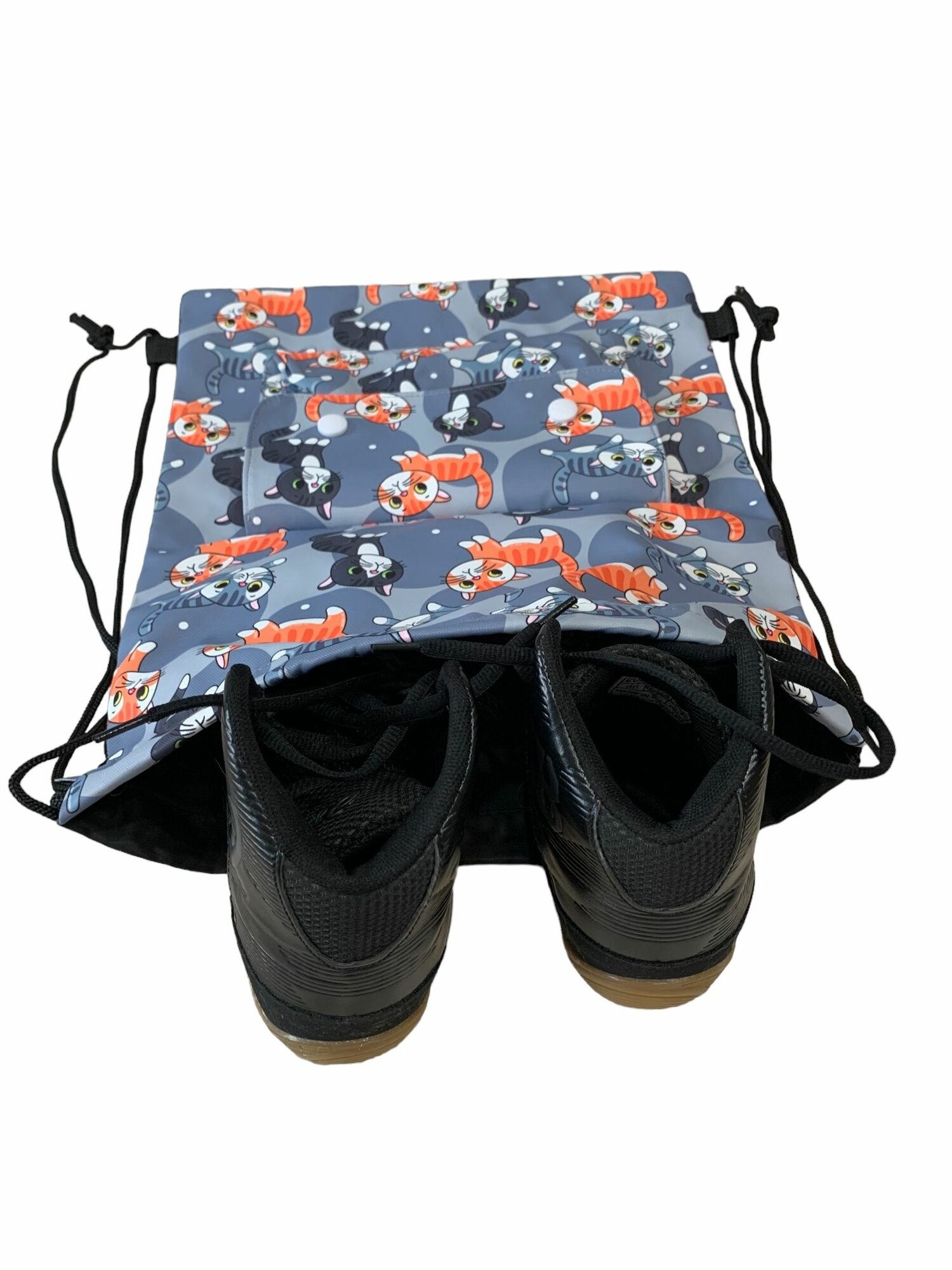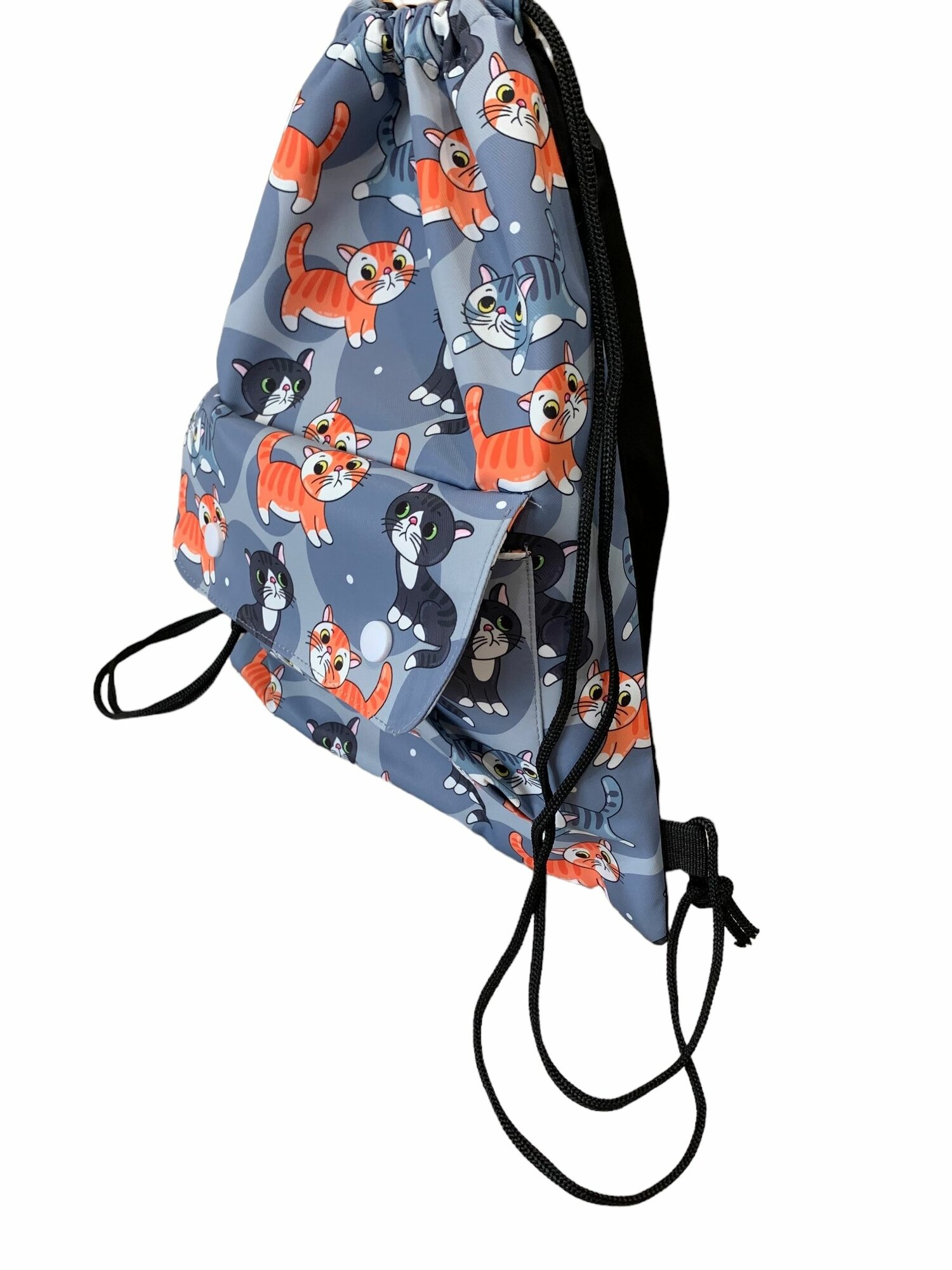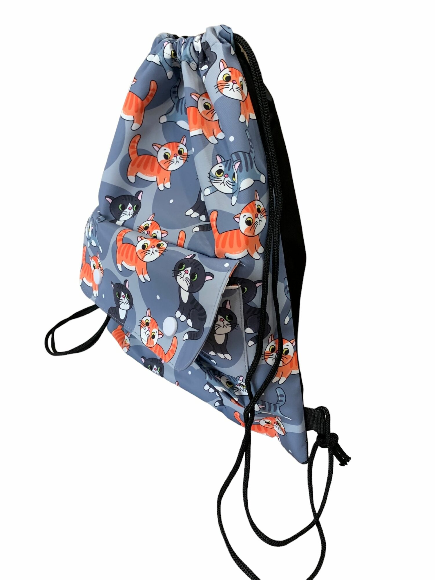 СохранитьСумка-мешок спортивная для обуви/для вещей/Серая с котиками с внешним карманом на кнопках интересное: