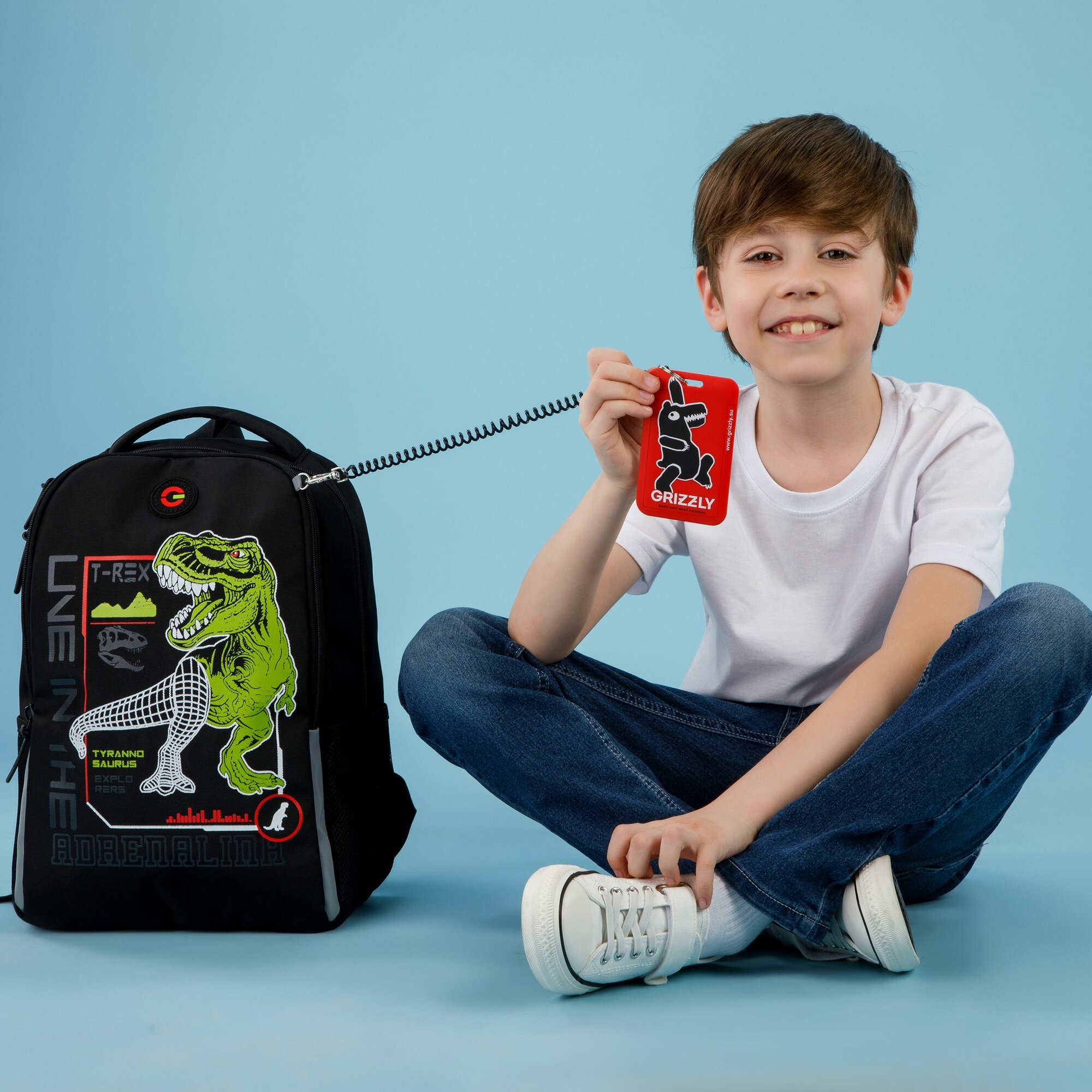 Рюкзак школьный GRIZZLY легкий с жесткой спинкой, двумя отделениями, для мальчика RB-451-9/1