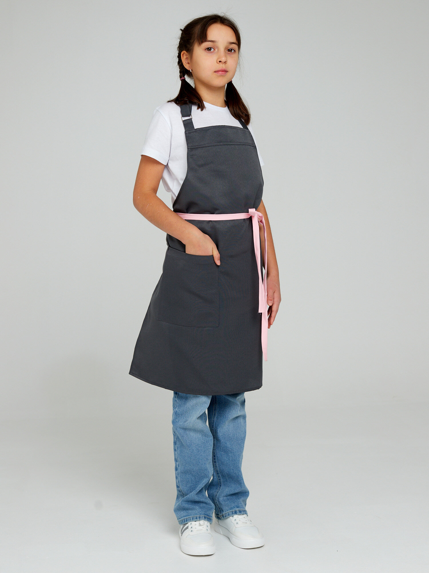Фартук подростковый антрацит с розовыми завязками/завязки на талии/для уроков труда/кулинарии/творчества интересное: