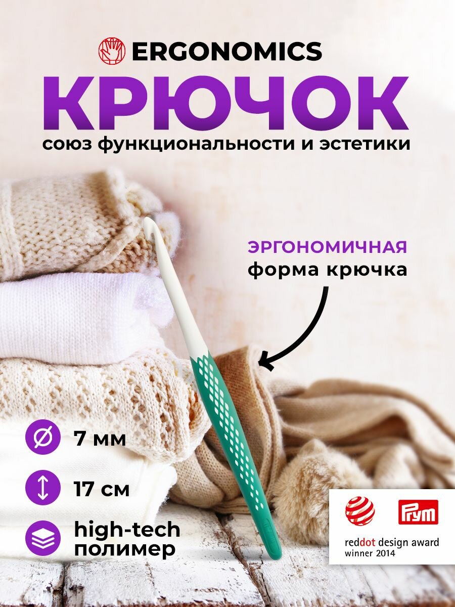 Крючок для вязания 7 мм/17см, Ergonomics Prym, 218489 интересное:
