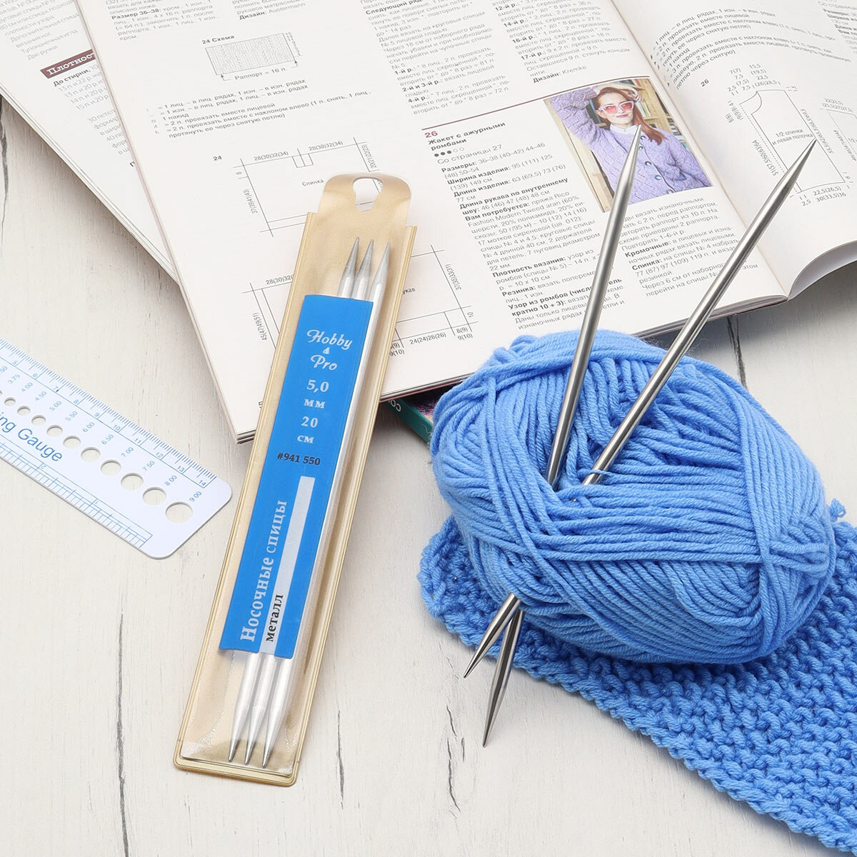 Спицы для вязания носочные Hobby&Pro, 20см*5мм, металлические, 5 шт