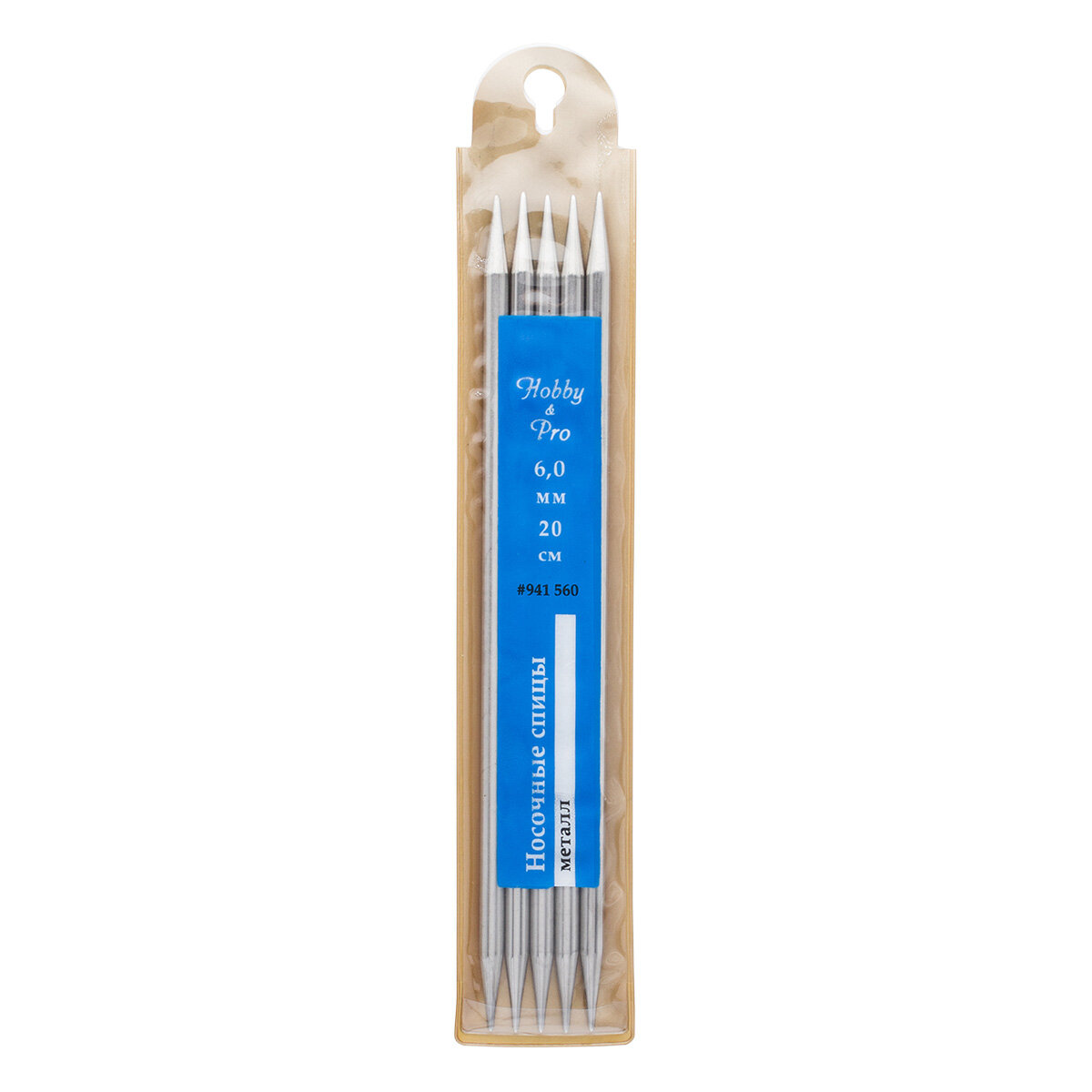 Спицы для вязания носочные Hobby&Pro, 20см*6мм, металлические, 5 шт