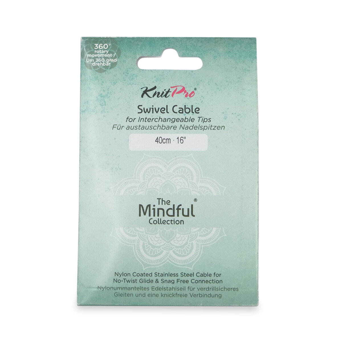 Тросик поворотный для съемных спиц Mindful, 94 см, нержавеющая сталь с нейлоновым покрытием, бирюзовый, KnitPro