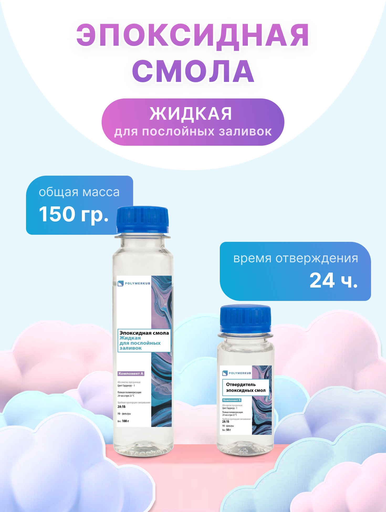 Эпоксидная смола "PolymerKub", для творчества, жидкая, прозрачная, 150 гр
