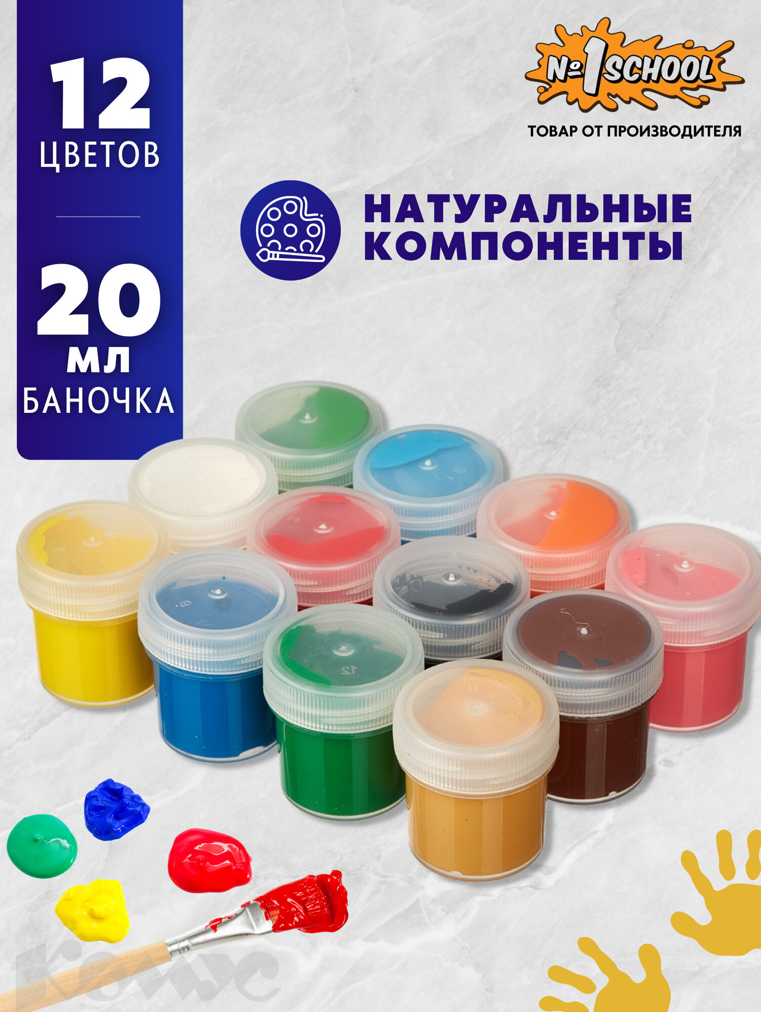 Гуашь №1 School, 12 цветов